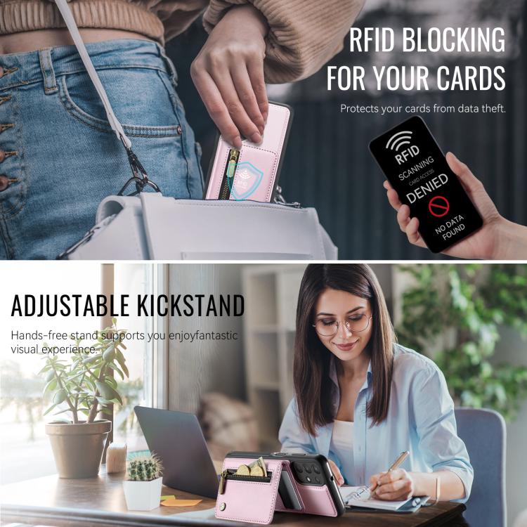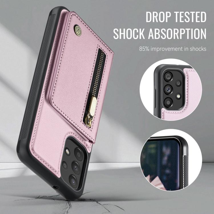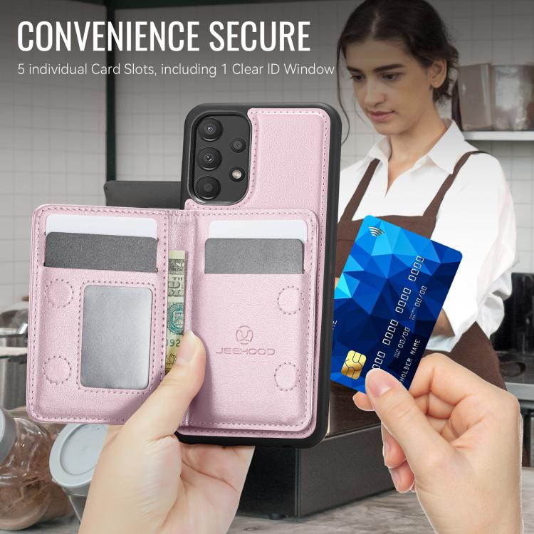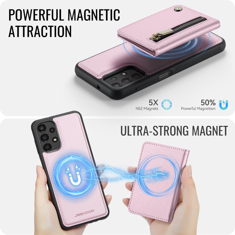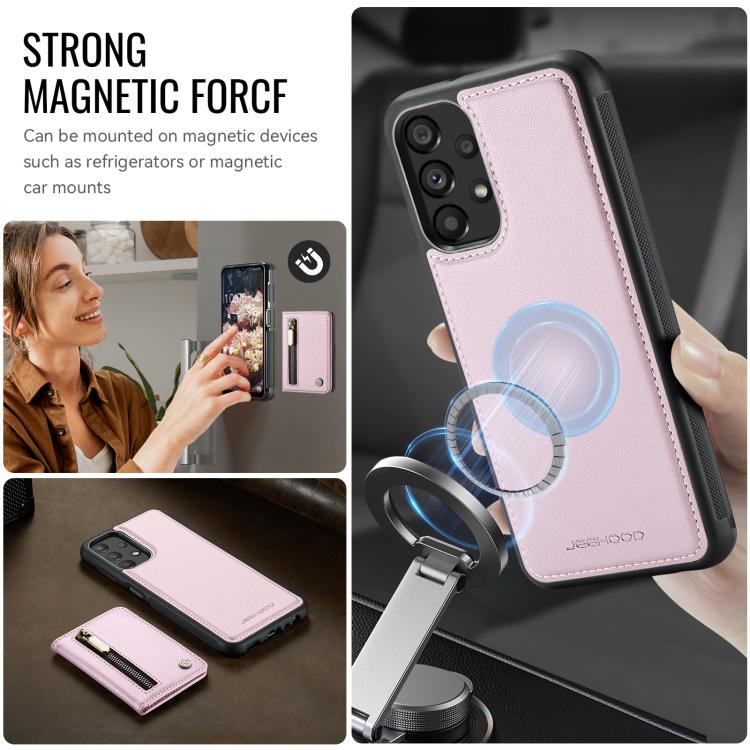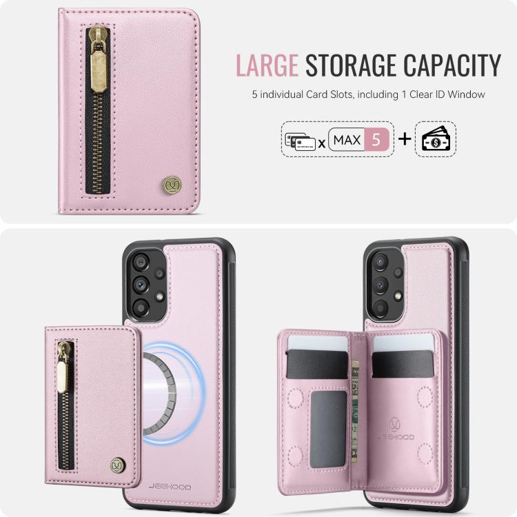 For Samsung Galaxy A13 4G / 5G / A04s JEEHOOD J12 Exquisite RFID MagSafe Zipper Card Bag Phone Case(Pink)