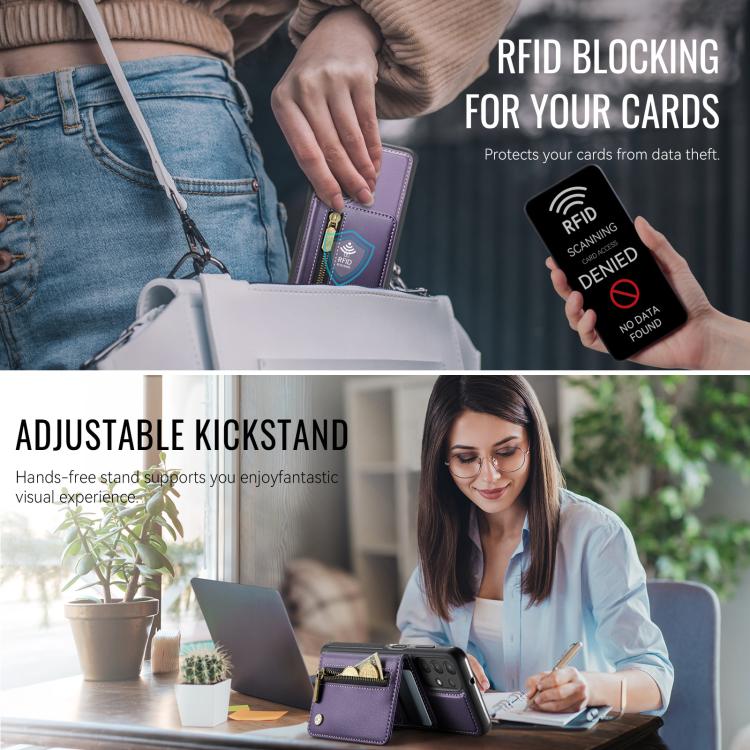 4. Convenient card holder with one zippered pocket for coins, one wallet, one photo frame, and three card slots.