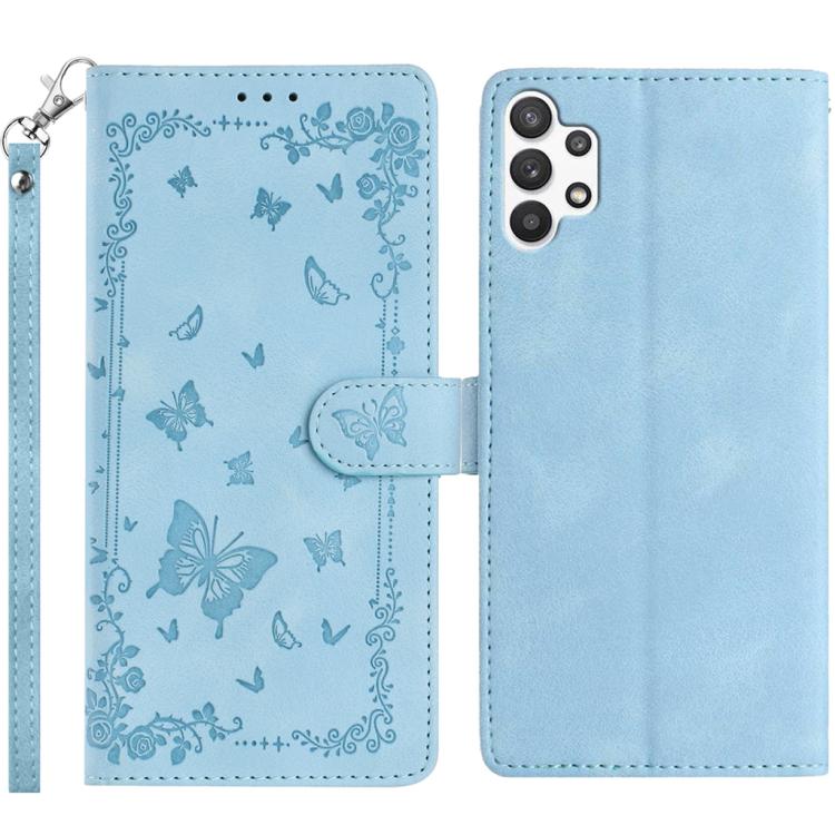 For Samsung Galaxy A13 4G Secret Garden Butterfly Pattern Leather Phone Case(Blue)