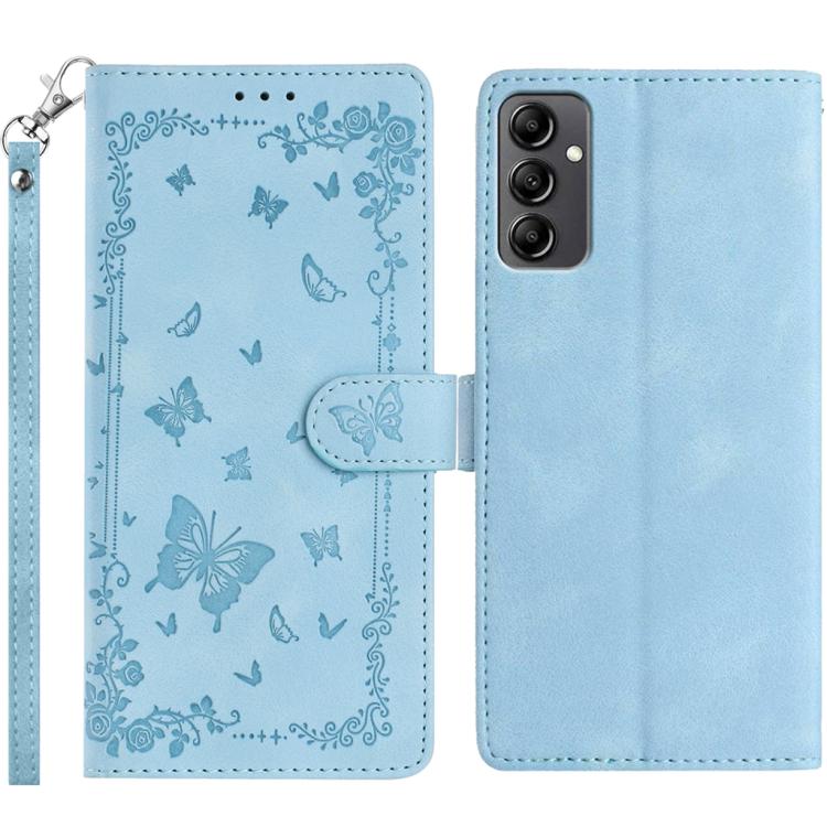 For Samsung Galaxy A14 5G Secret Garden Butterfly Pattern Leather Phone Case(Blue)