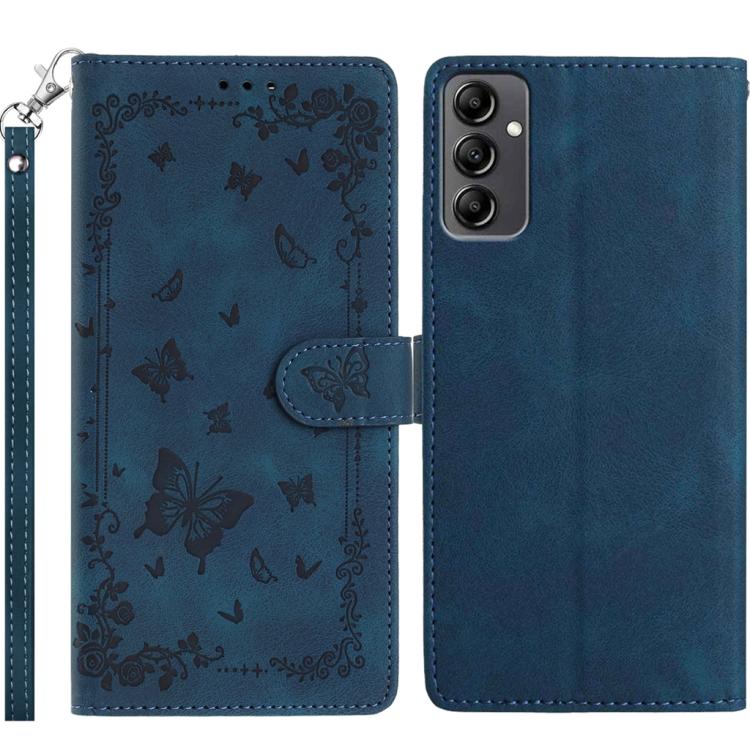 For Samsung Galaxy A14 5G Secret Garden Butterfly Pattern Leather Phone Case(Dark Blue)