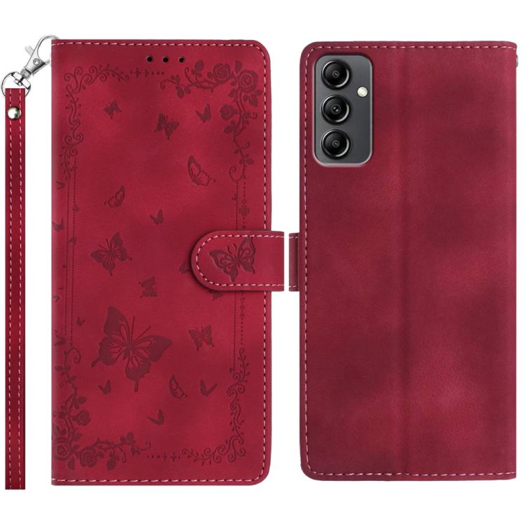 For Samsung Galaxy A14 5G Secret Garden Butterfly Pattern Leather Phone Case(Red)