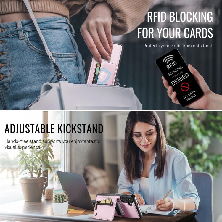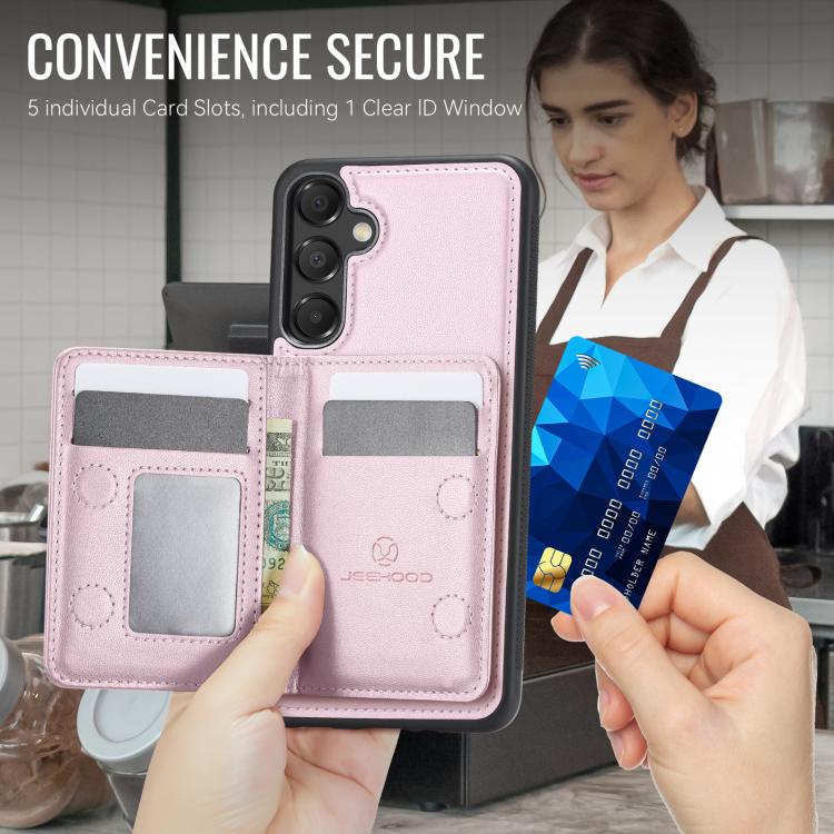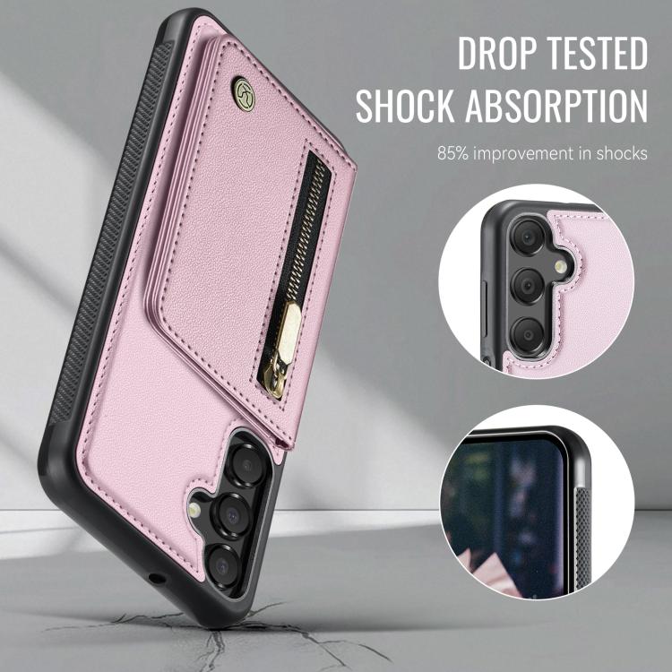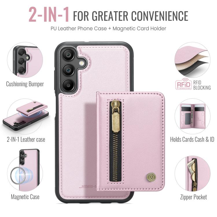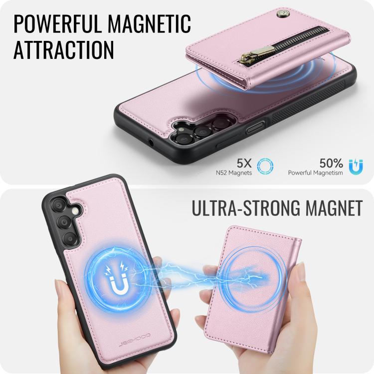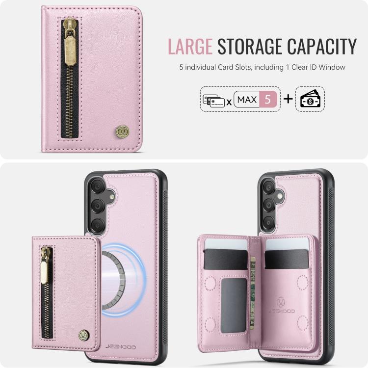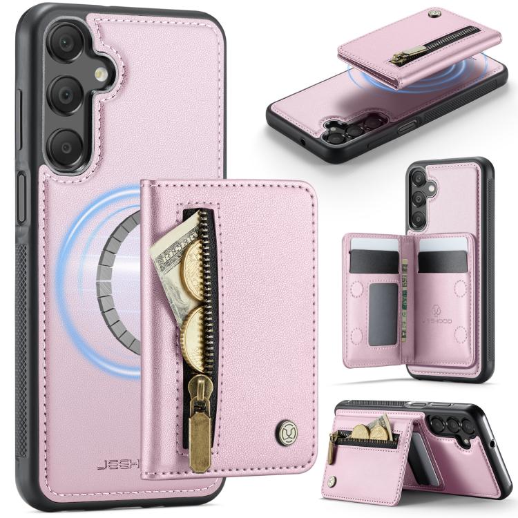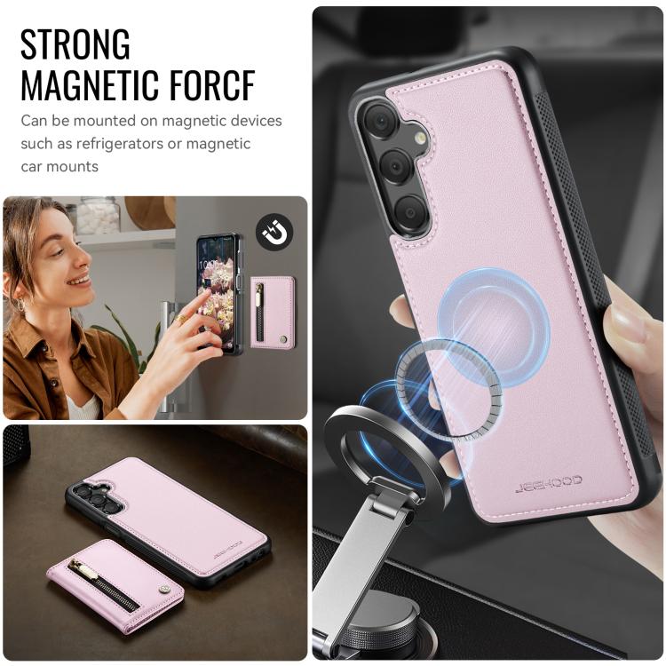 For Samsung Galaxy A15 4G / 5G JEEHOOD J12 Exquisite RFID MagSafe Zipper Card Bag Phone Case(Pink)
