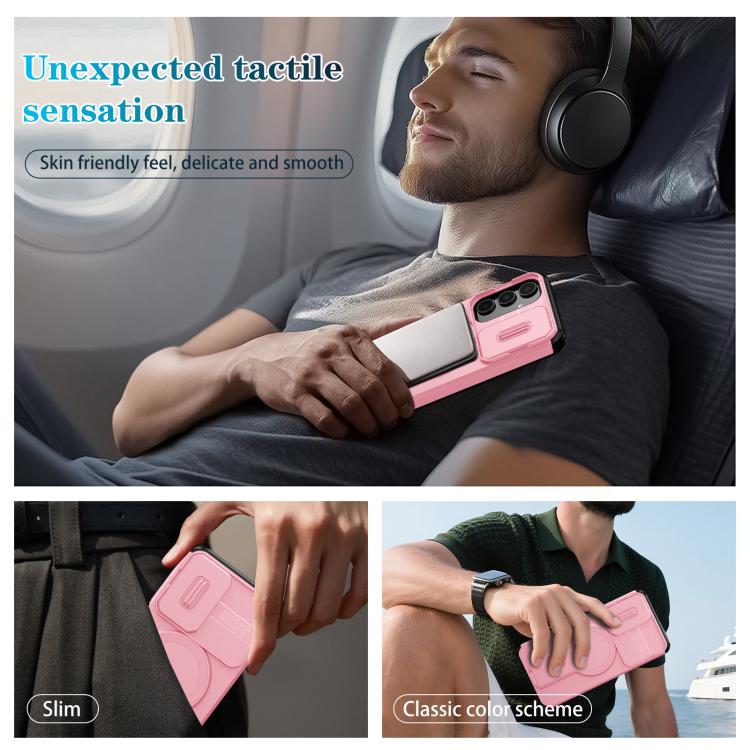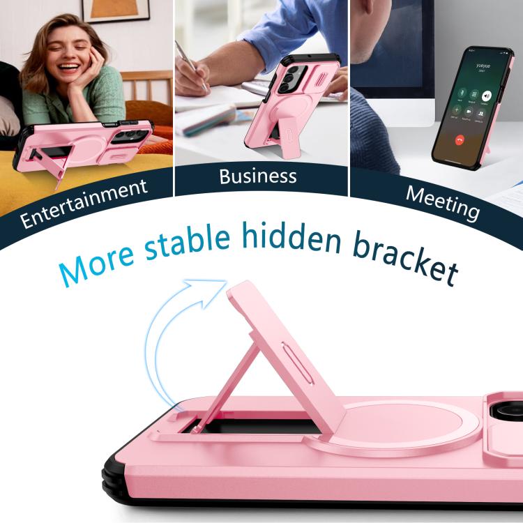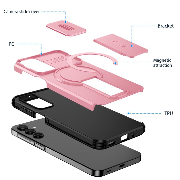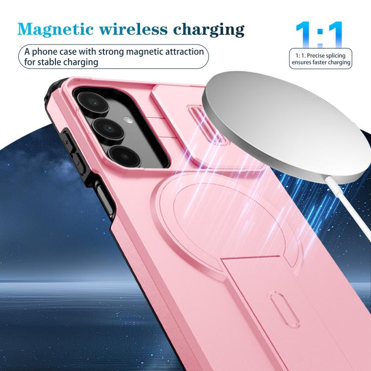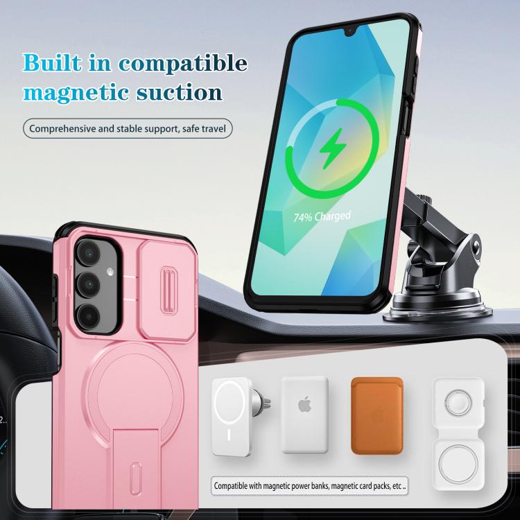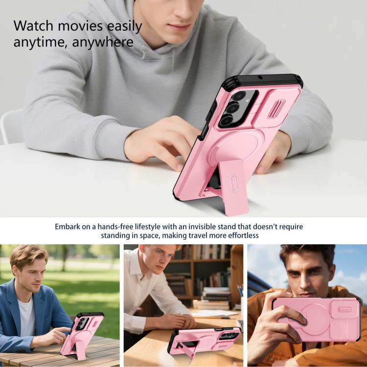 For Samsung Galaxy A16 5G / 4G Sliding Camshield MagSafe Holder Phone Case(Pink)