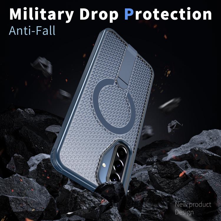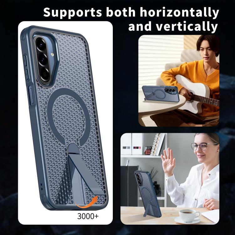 For Samsung Galaxy A17 5G Honeycomb Cooling MagSafe Holder Phone Case(Blue)
