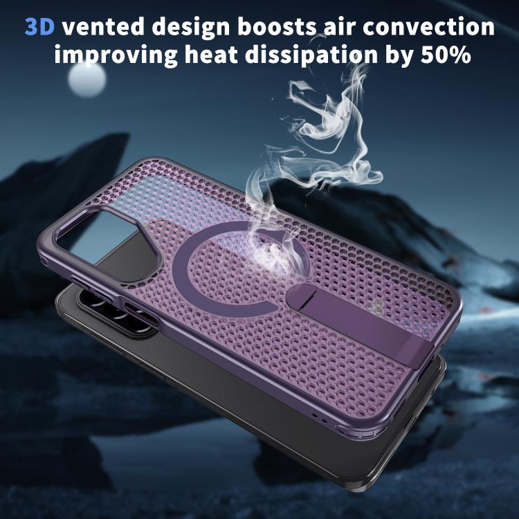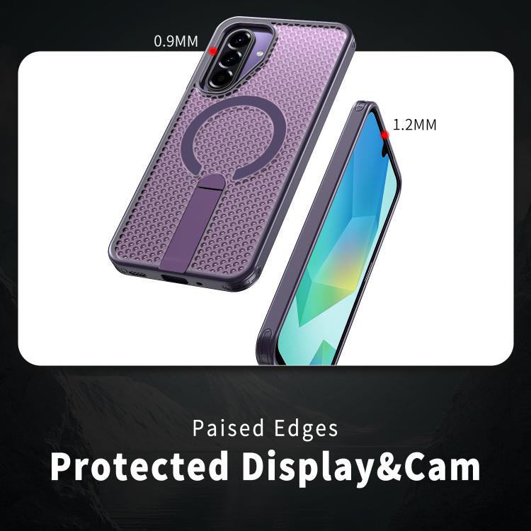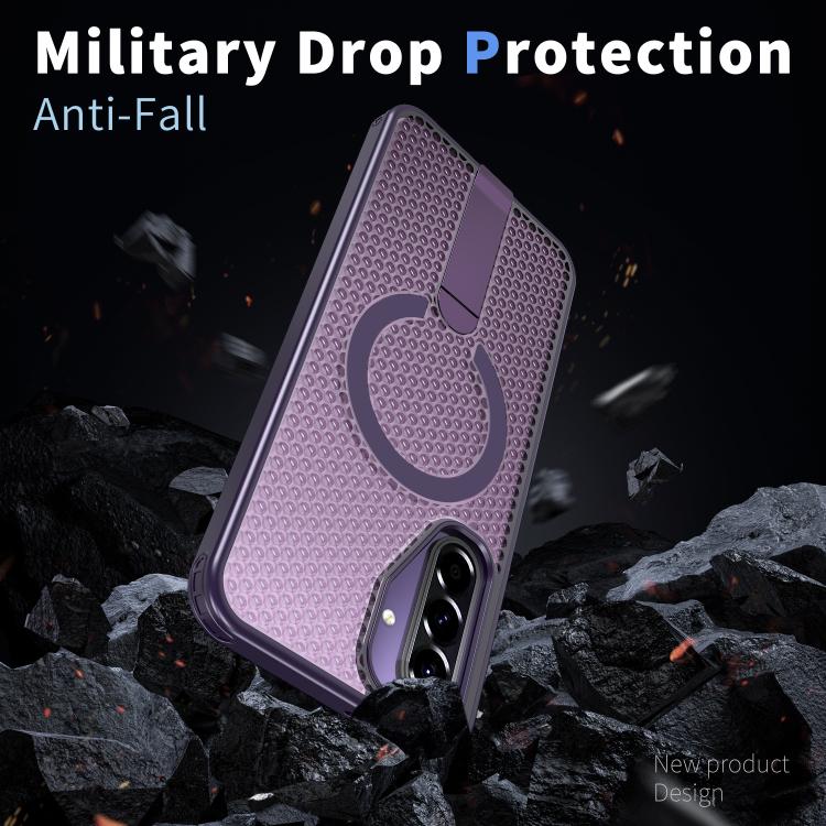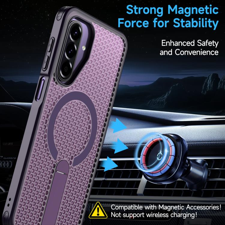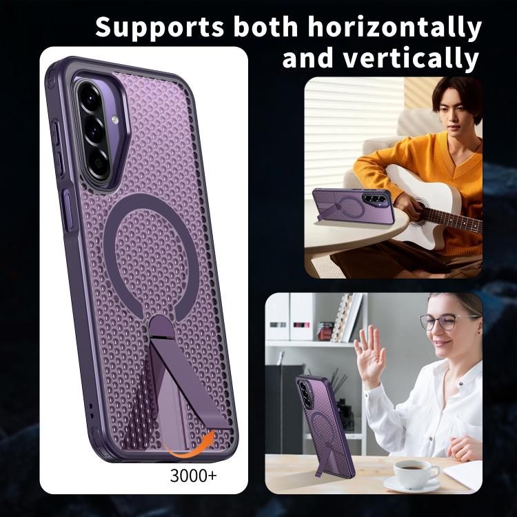 For Samsung Galaxy A17 5G Honeycomb Cooling MagSafe Holder Phone Case(Purple)