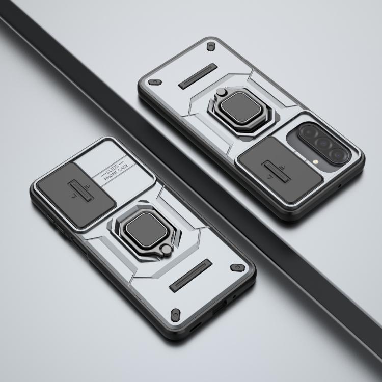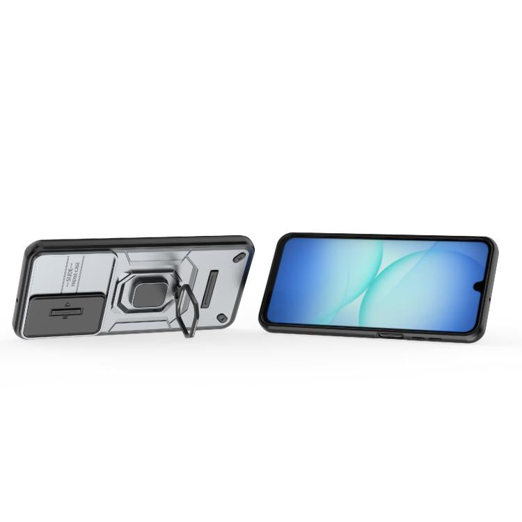 For Samsung Galaxy A17 5G Sliding Camshield TPU + PC Shockproof Phone Case with Holder(Grey)