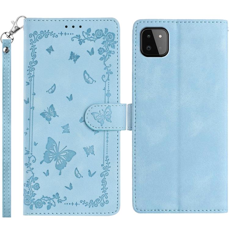 For Samsung Galaxy A22 5G Secret Garden Butterfly Pattern Leather Phone Case(Blue)