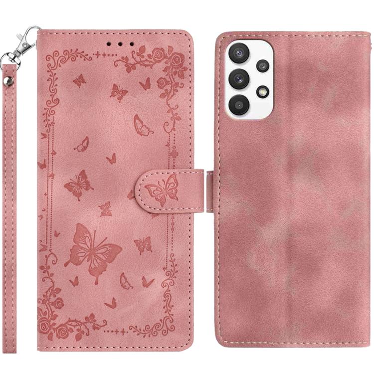 For Samsung Galaxy A23 Secret Garden Butterfly Pattern Leather Phone Case(Pink)