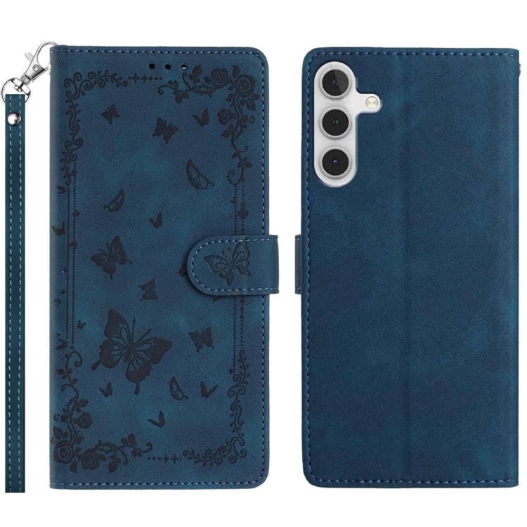 For Samsung Galaxy A25 5G Secret Garden Butterfly Pattern Leather Phone Case(Dark Blue)