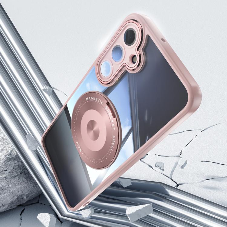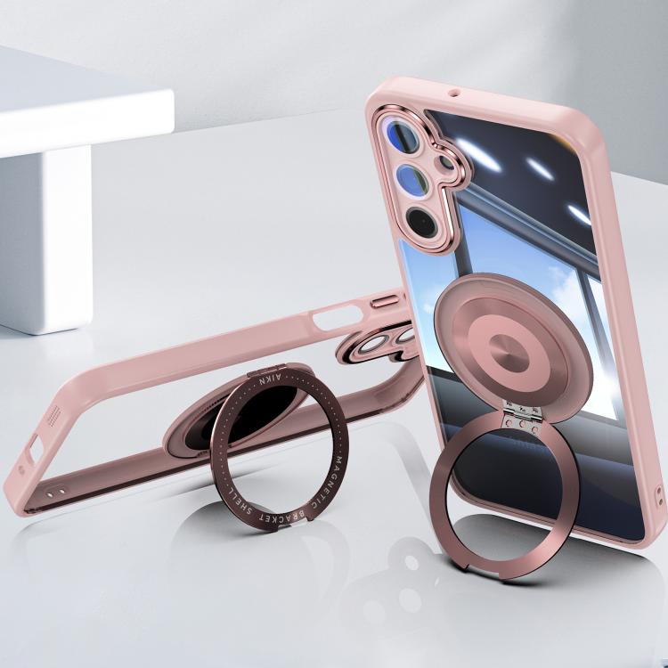 For Samsung Galaxy A26 5G 360 Holder MagSafe Acrylic Hybrid TPU Phone Case(Pink)