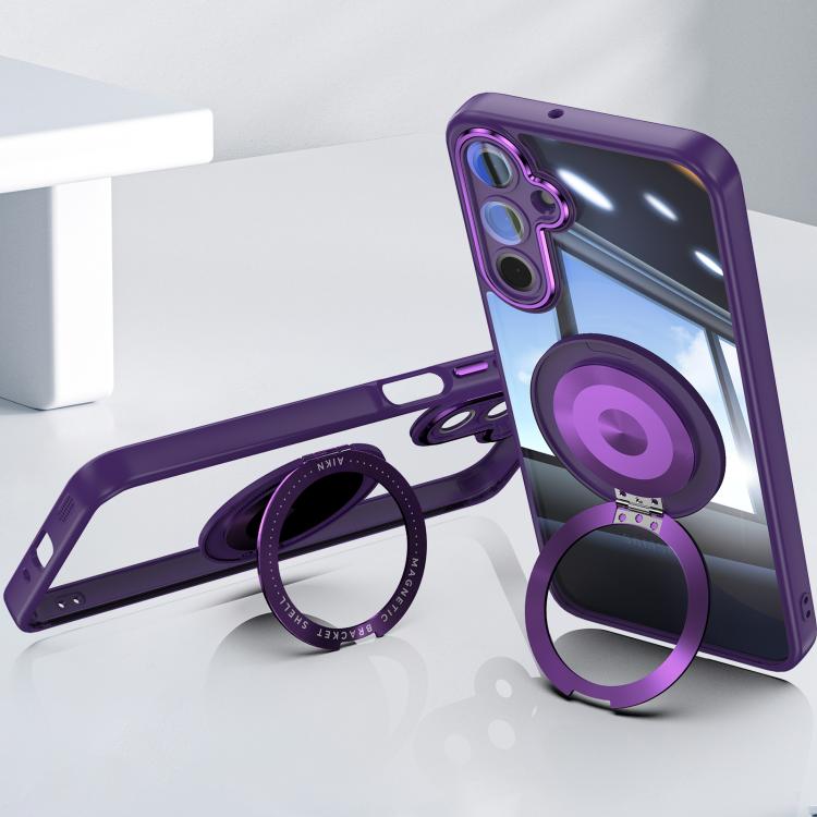 For Samsung Galaxy A36 / A56 5G 360 Holder MagSafe Acrylic Hybrid TPU Phone Case(Purple)