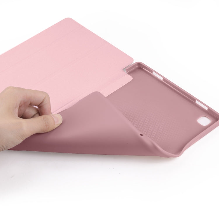 For Samsung Galaxy A7 10.4 (2020) T500 3-folding Horizontal Flip Honeycomb TPU Shockproof + PU Leather Case with Holder(Rose Gold)