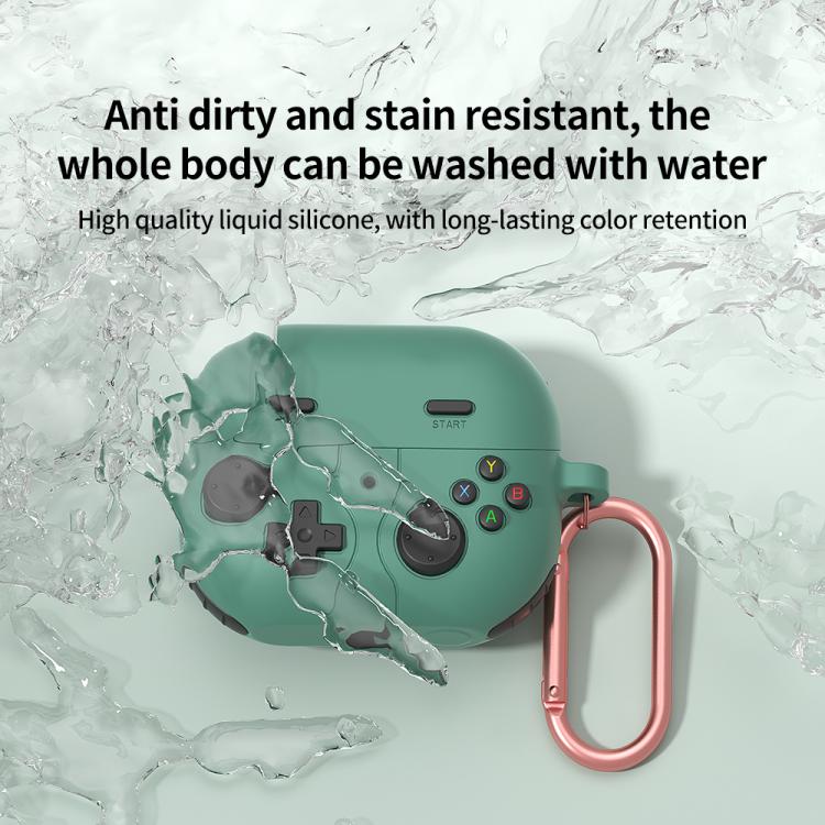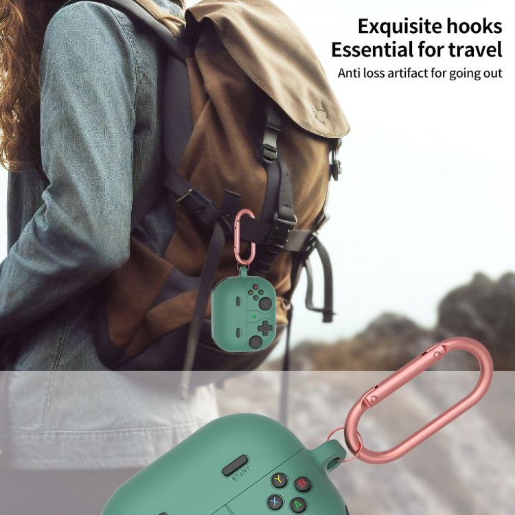 For Samsung Galaxy Buds3 FE Retro Game Console Style Silicone Earbuds Case(Pine Green)