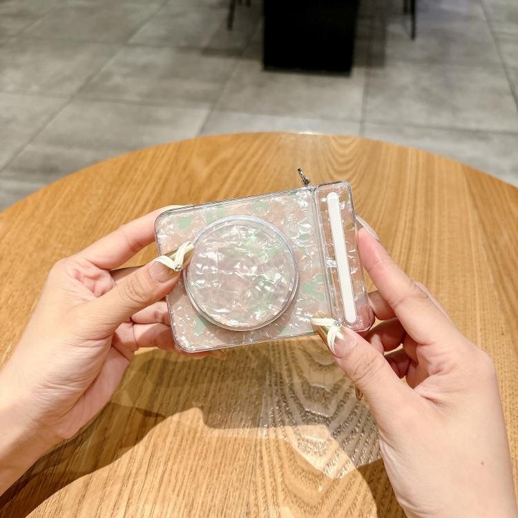 For Samsung Galaxy Flip6 5G Axis Pearlescent Shell Texture MagSafe Phone Case with Bracelet(Beige)