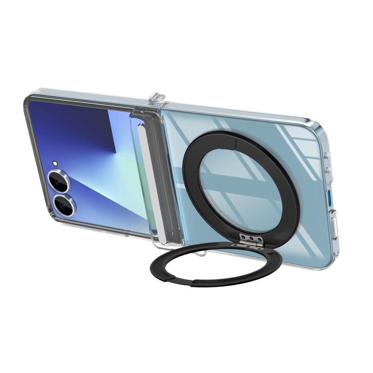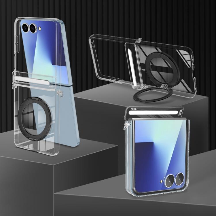 For Samsung Galaxy Flip7 5G Aluminum Alloy Holder MagSafe Crystal Hinge Phone Case(Black)
