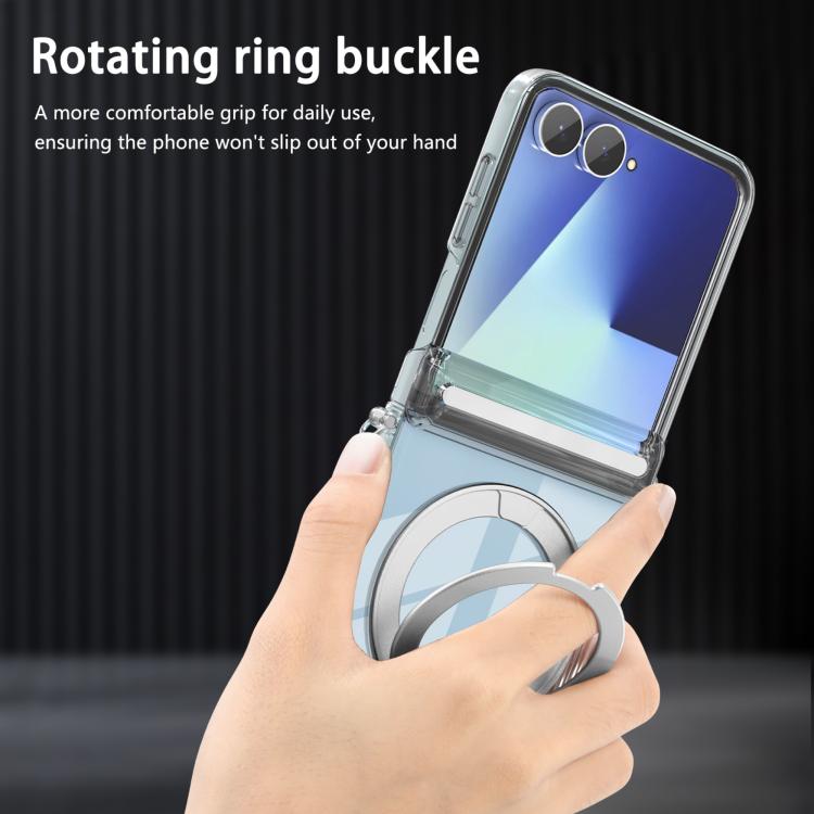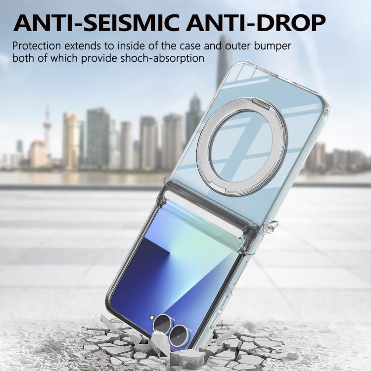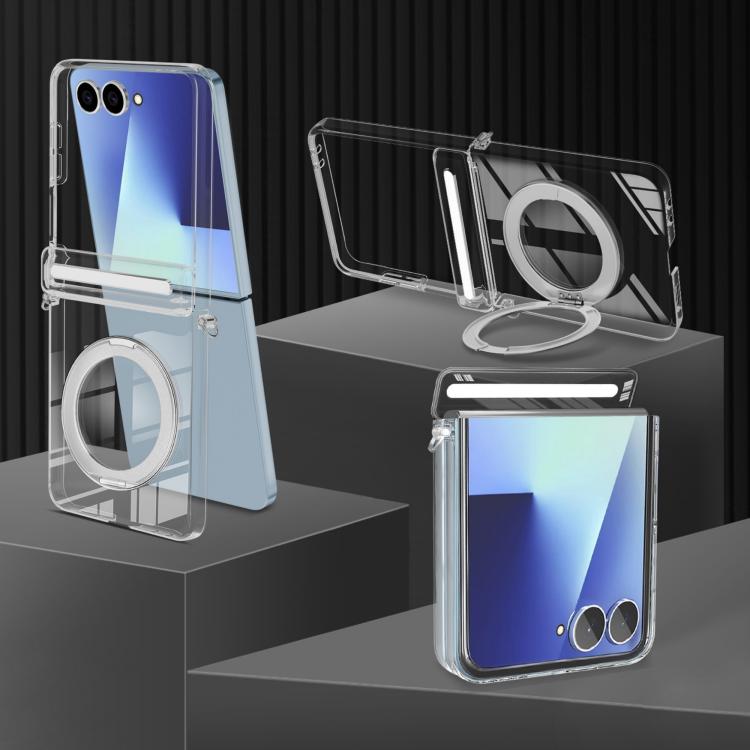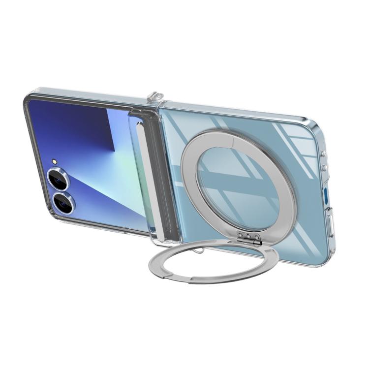 For Samsung Galaxy Flip7 5G Aluminum Alloy Holder MagSafe Crystal Hinge Phone Case(Silvery)