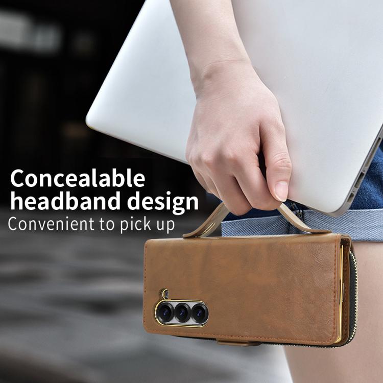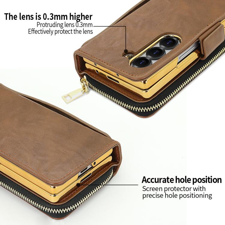 For Samsung Galaxy Fold6 VIETAO Magnetic Buckle RFID Wallet Leather Phone Case(Brown)