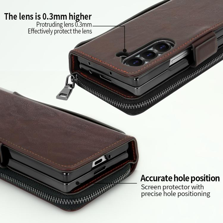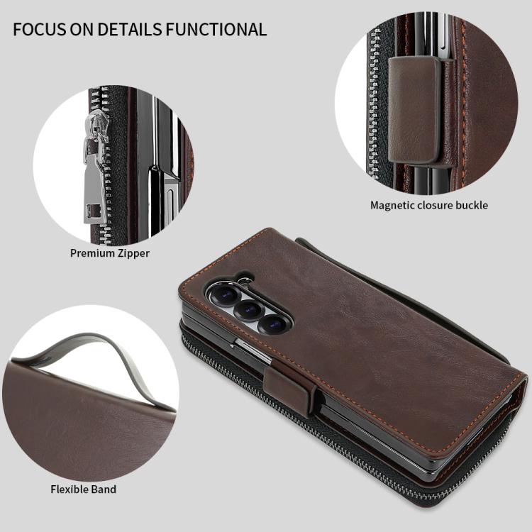 For Samsung Galaxy Fold6 VIETAO Magnetic Buckle RFID Wallet Leather Phone Case(Coffee Brown)
