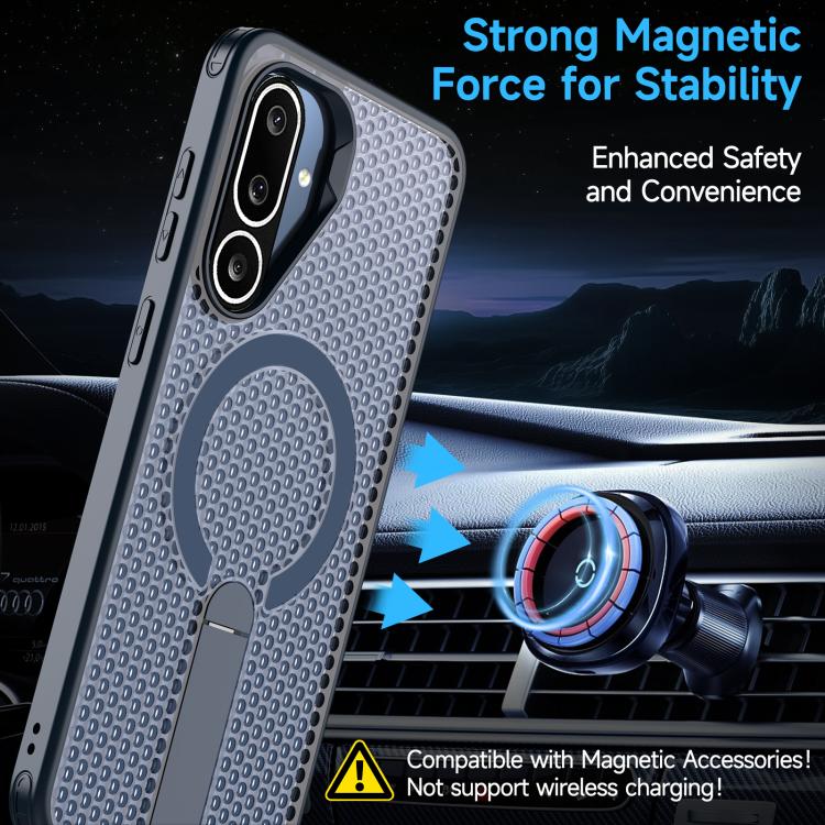 For Samsung Galaxy M56 / F56 5G Honeycomb Cooling MagSafe Holder Phone Case(Blue)