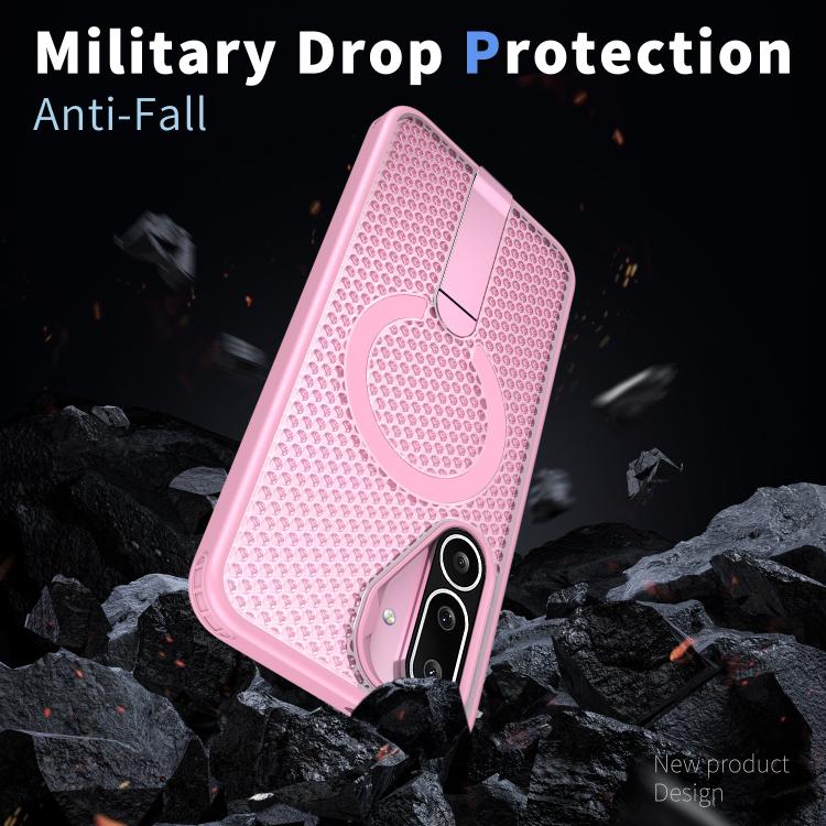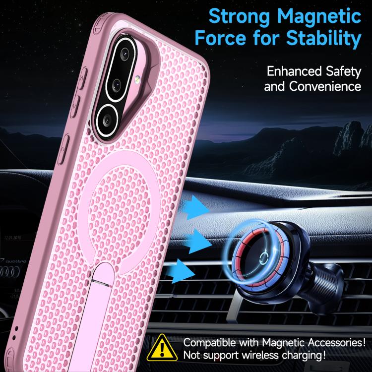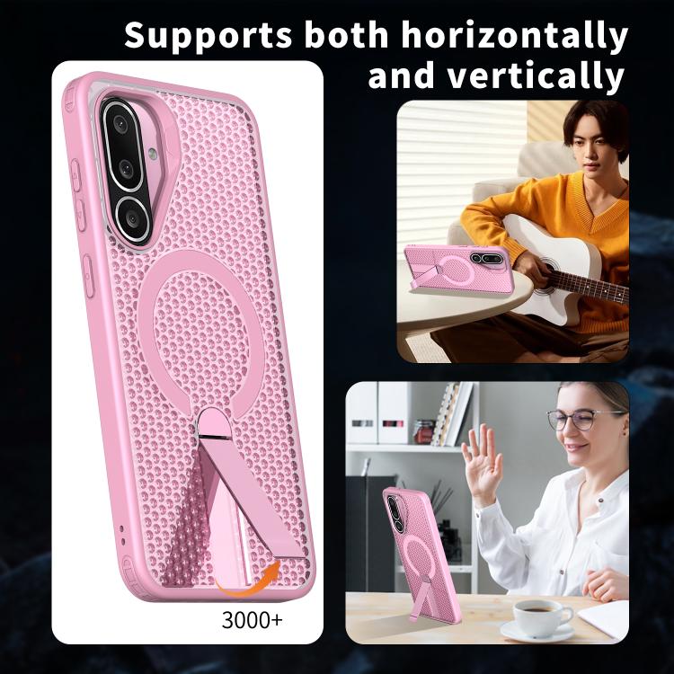 For Samsung Galaxy M56 / F56 5G Honeycomb Cooling MagSafe Holder Phone Case(Pink)