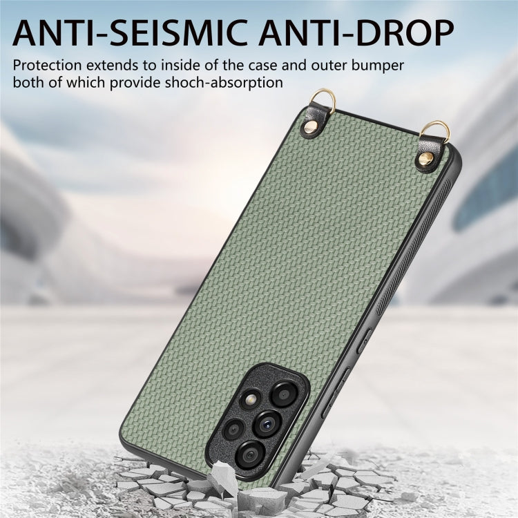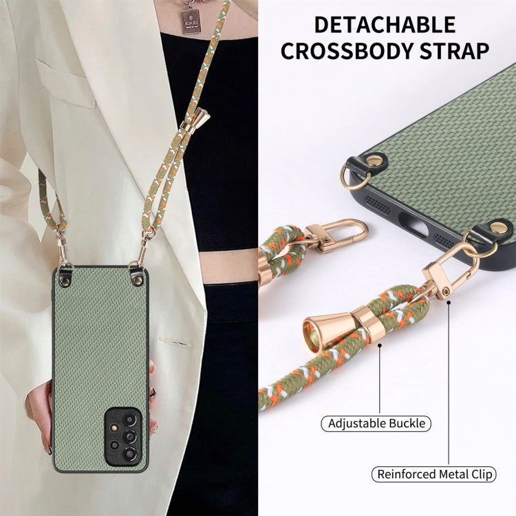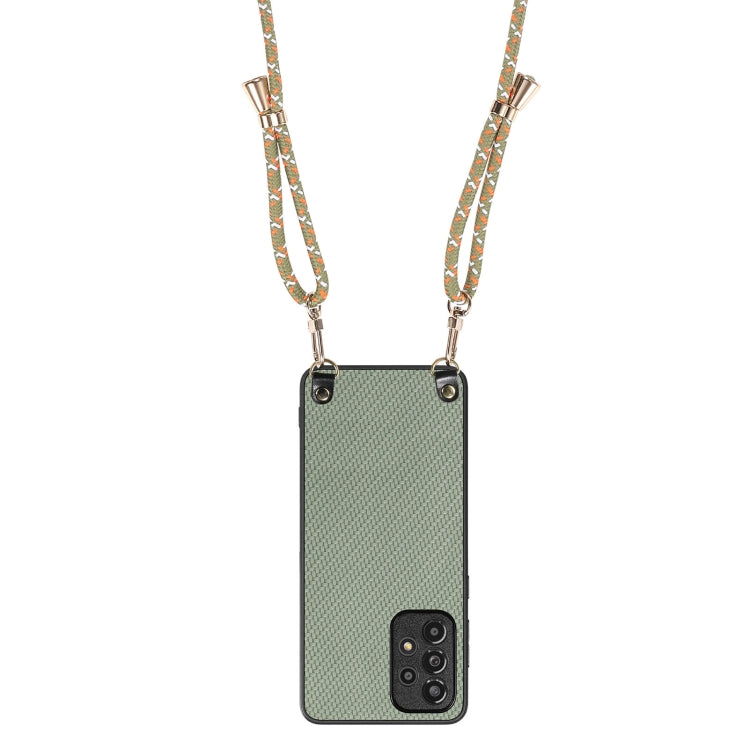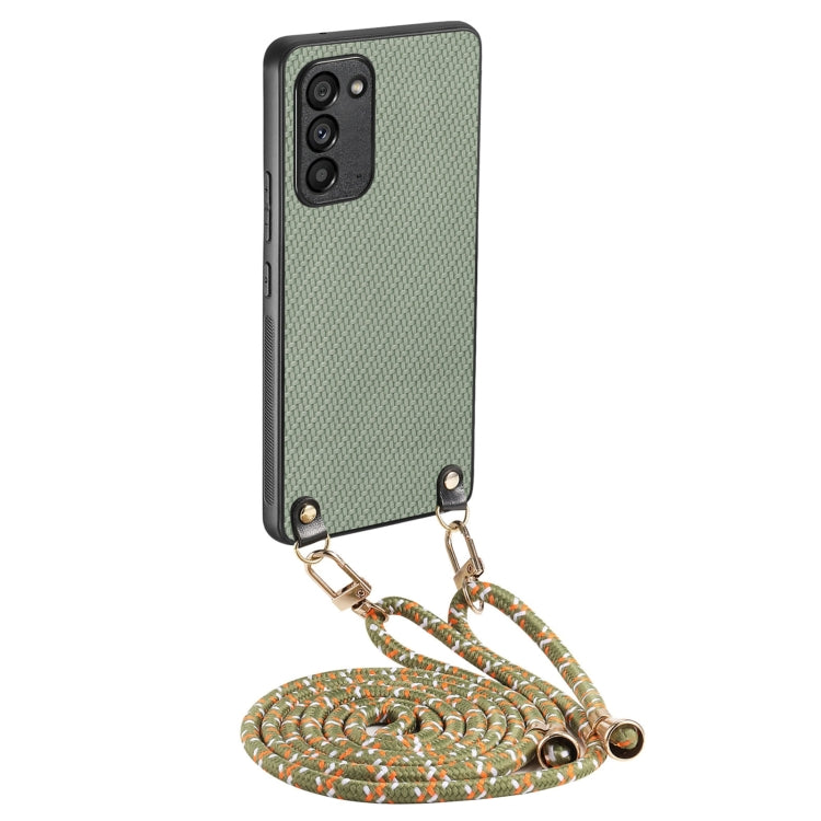 For Samsung Galaxy Note20 Carbon Fiber Texture Leather Back Cover Phone Case with Crossbody Strap(Green)