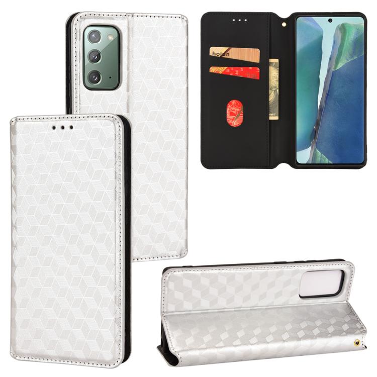 For Samsung Galaxy Note20 Cubic Grid Texture Flip Leather Phone Case(Silver)