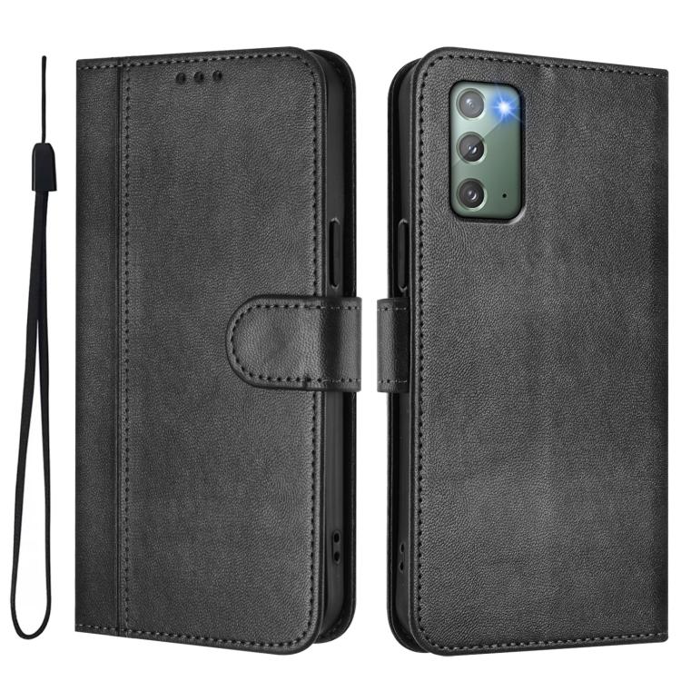 For Samsung Galaxy Note20 Line Splicing Buckle Retro Leather Phone Case(Black)