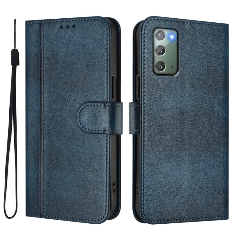 For Samsung Galaxy Note20 Line Splicing Buckle Retro Leather Phone Case(Dark Blue)