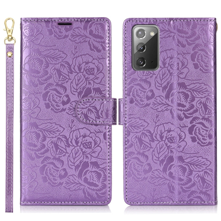 For Samsung Galaxy Note20 Peony Flowers Imprint Leather Phone Case(Purple)