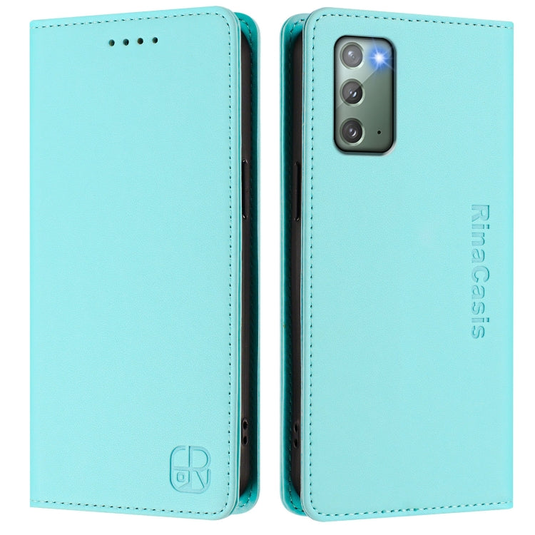 For Samsung Galaxy Note20 RC01 Dual-Folded Magnetic Suction RFID Leather Phone Case(Mint Green)