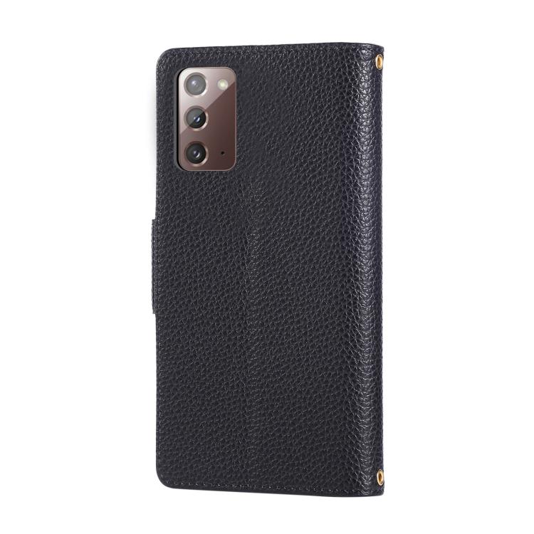 For Samsung Galaxy Note20 Round Buckle Zipper Wallet Leather Phone Case with Crossbody Strap(Black)