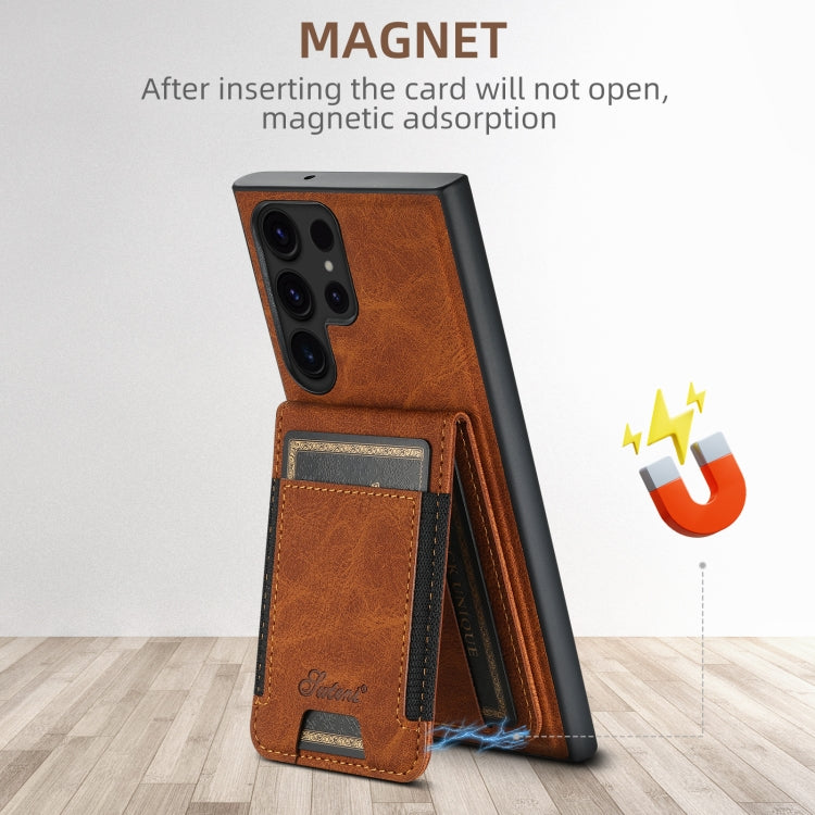 For Samsung Galaxy Note20 Suteni H17 Litchi Texture Leather MagSafe Detachable Wallet Phone Case(Khaki)