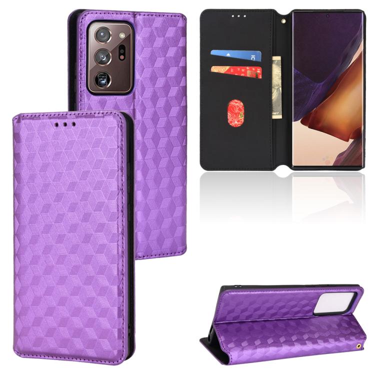 For Samsung Galaxy Note20 Ultra Cubic Grid Texture Flip Leather Phone Case(Purple)