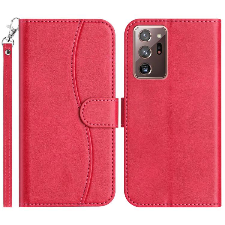 For Samsung Galaxy Note20 Ultra Dual-Folded S-shape Leather Phone Case(Rose Red)