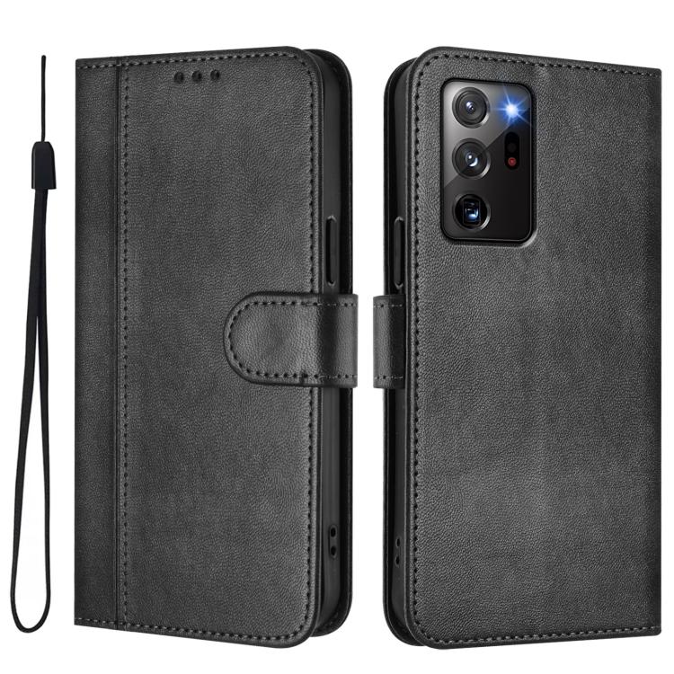 For Samsung Galaxy Note20 Ultra Line Splicing Buckle Retro Leather Phone Case(Black)