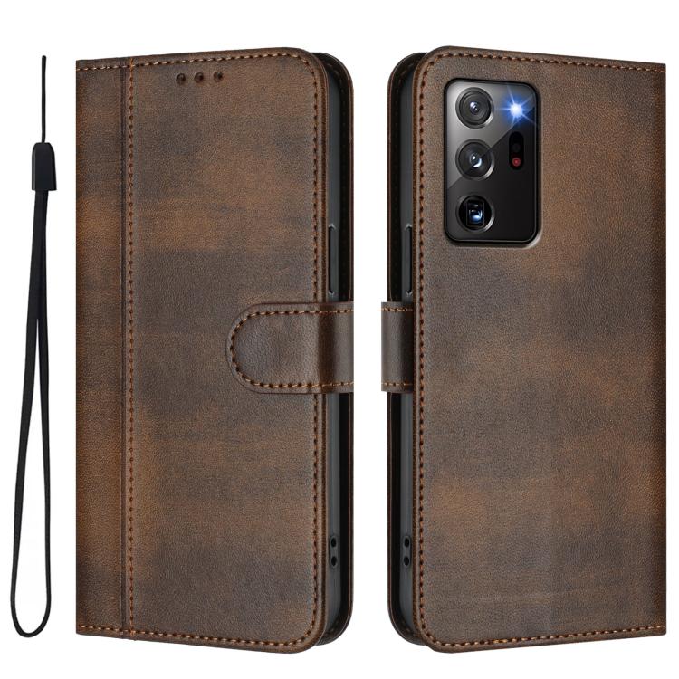 For Samsung Galaxy Note20 Ultra Line Splicing Buckle Retro Leather Phone Case(Brown)