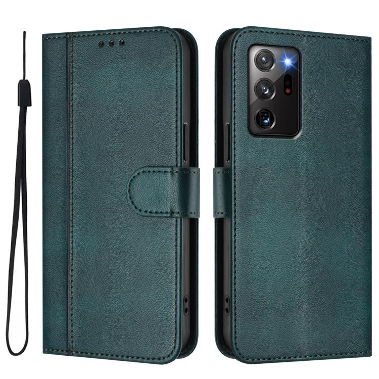 For Samsung Galaxy Note20 Ultra Line Splicing Buckle Retro Leather Phone Case(Dark Green)