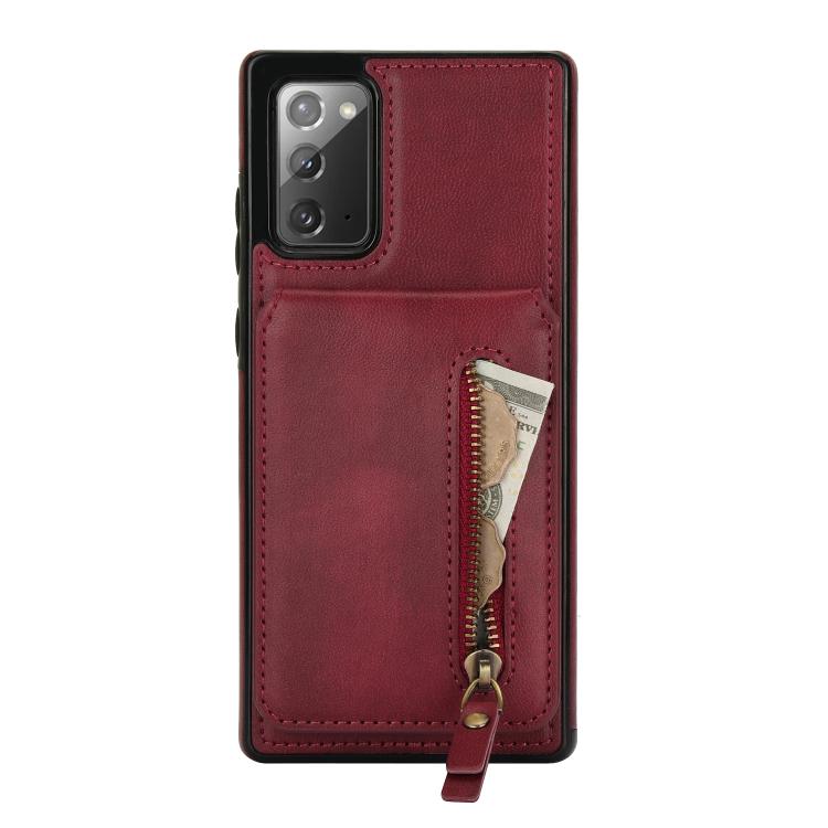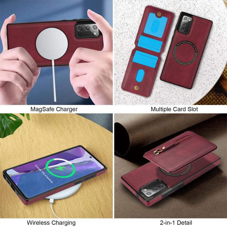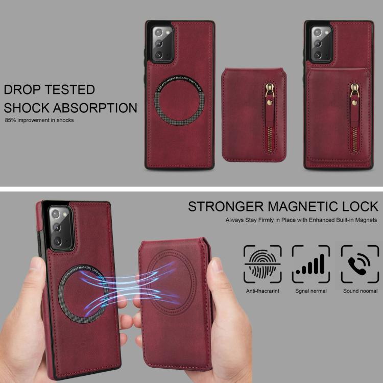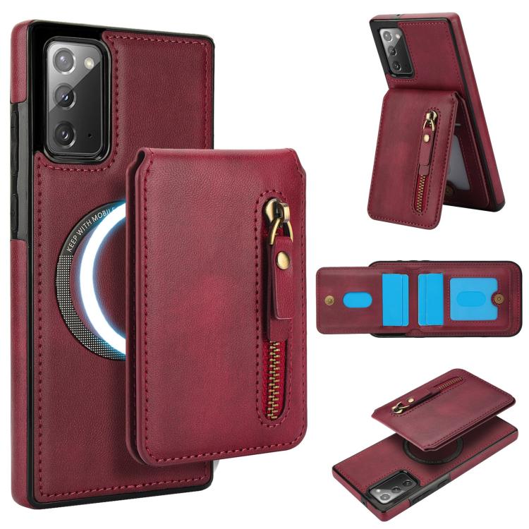 For Samsung Galaxy Note20 Zipper Wallet Split MagSafe Leather Back Phone Case(Red)