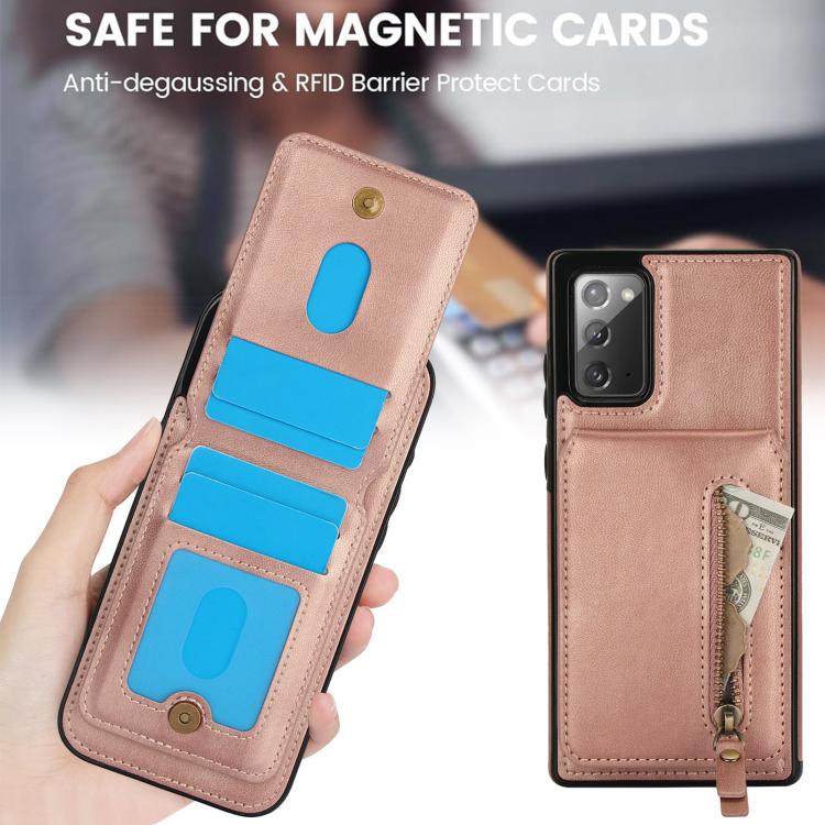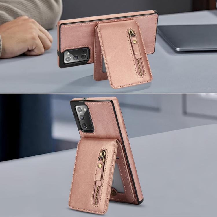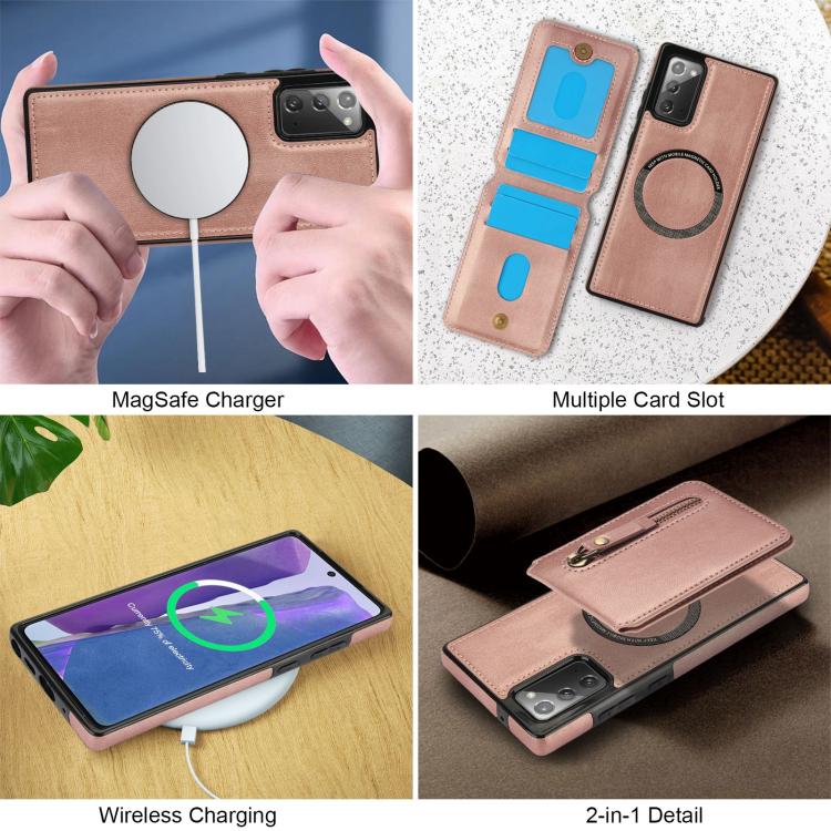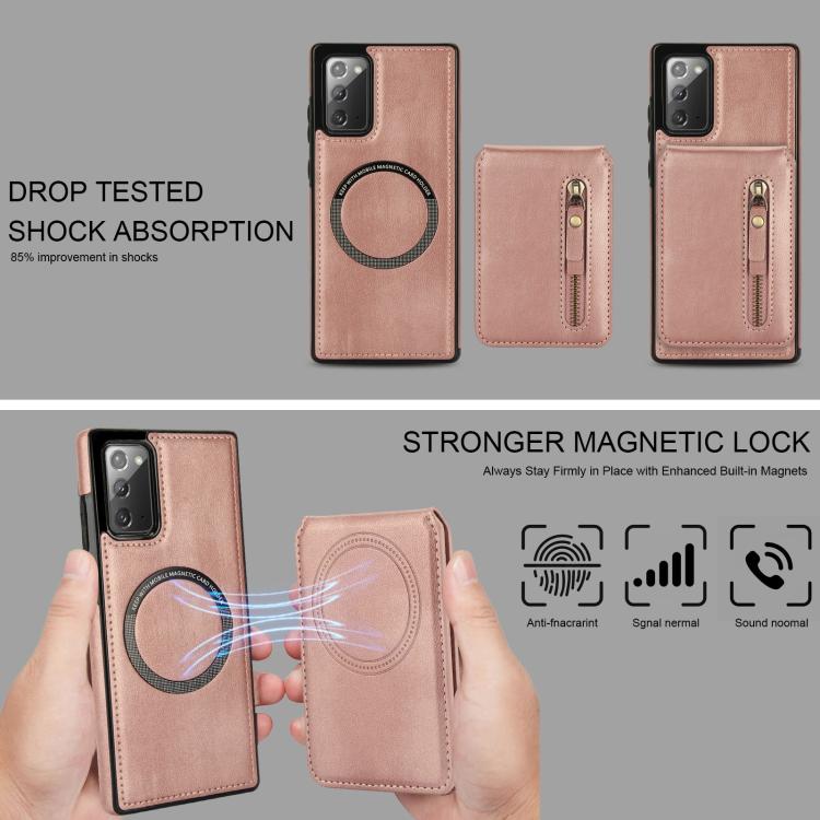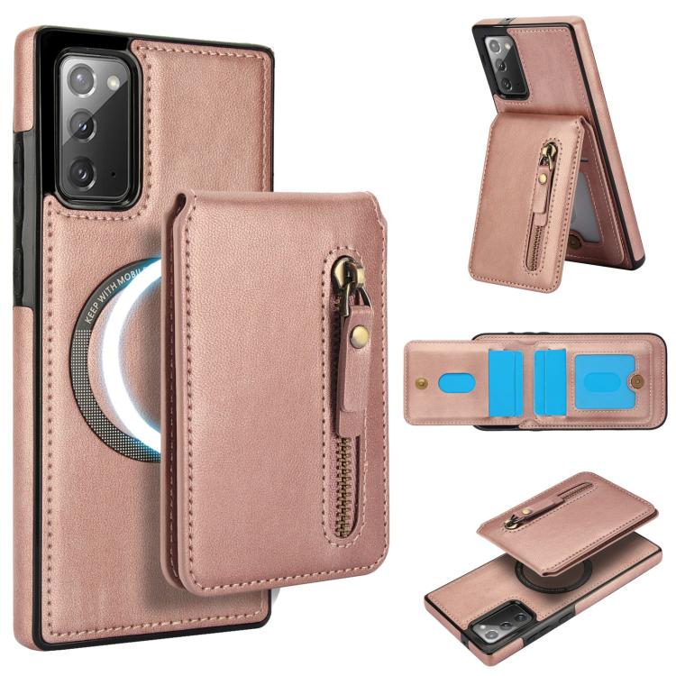 For Samsung Galaxy Note20 Zipper Wallet Split MagSafe Leather Back Phone Case(Rose Gold)