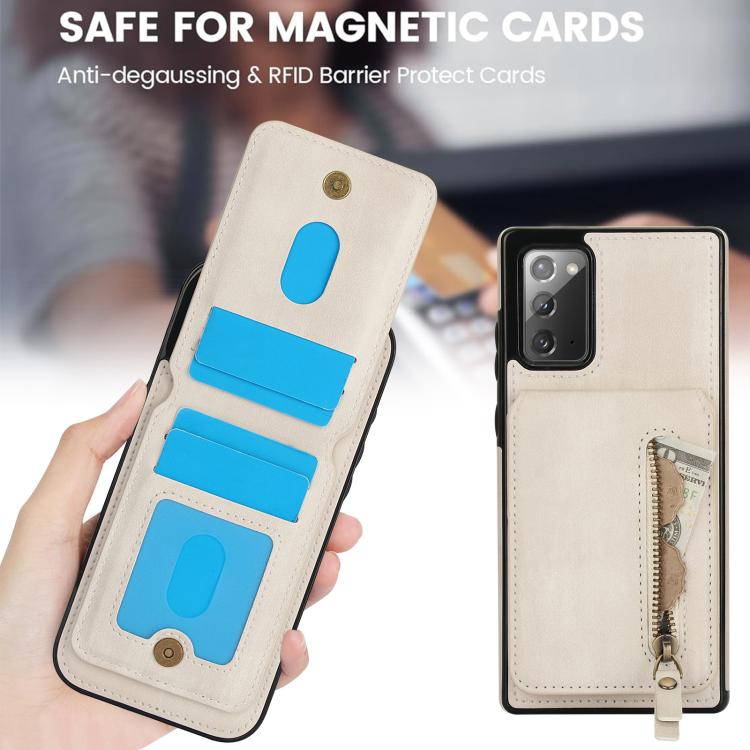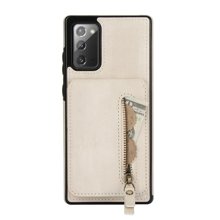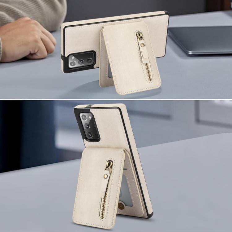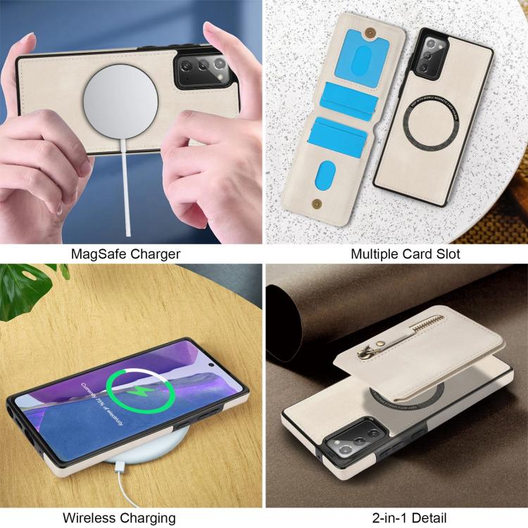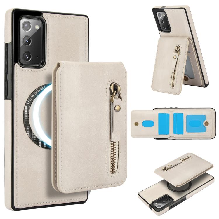 For Samsung Galaxy Note20 Zipper Wallet Split MagSafe Leather Back Phone Case(White)