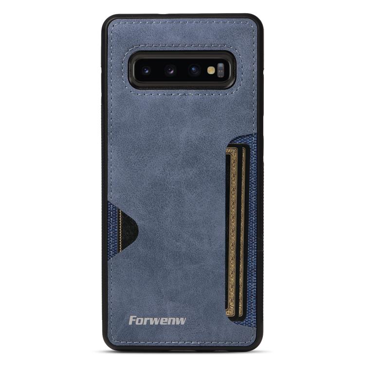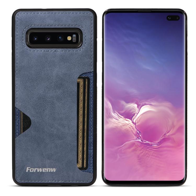 For Samsung Galaxy S10+ Forwenw F5 Series Integrated Card Bag Phone Case(Blue)