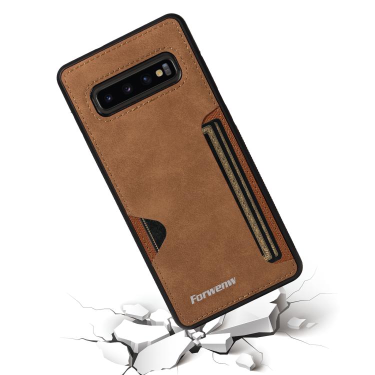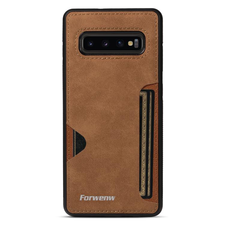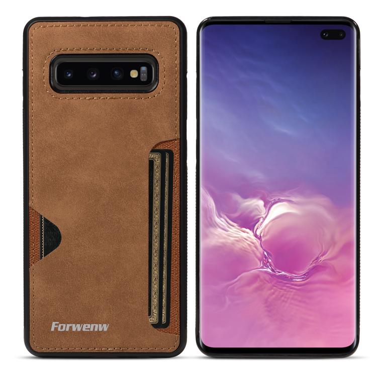 For Samsung Galaxy S10+ Forwenw F5 Series Integrated Card Bag Phone Case(Brown)