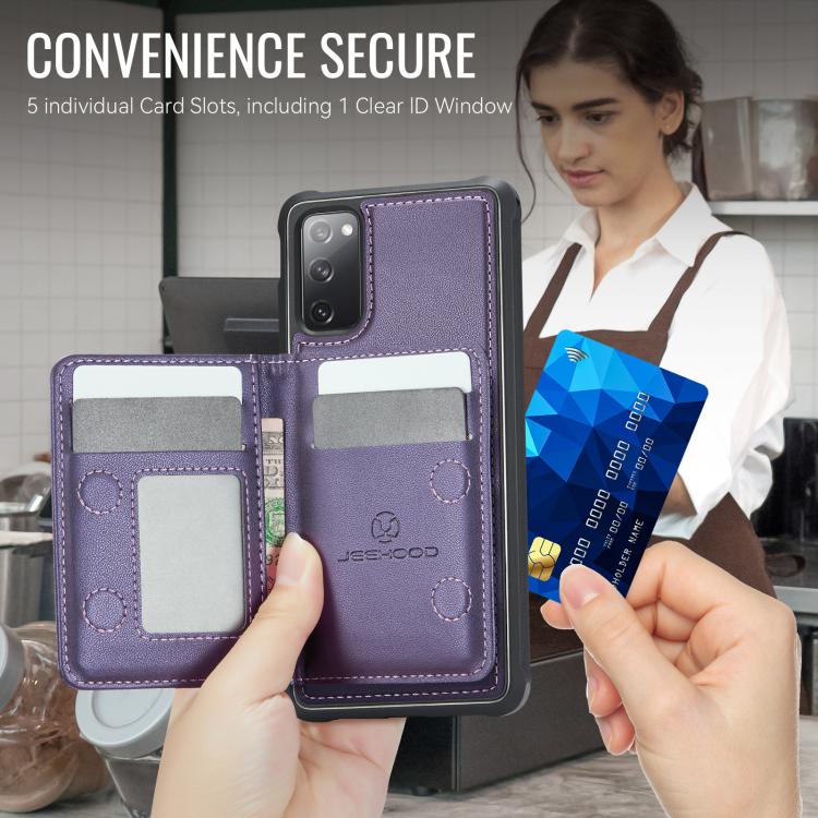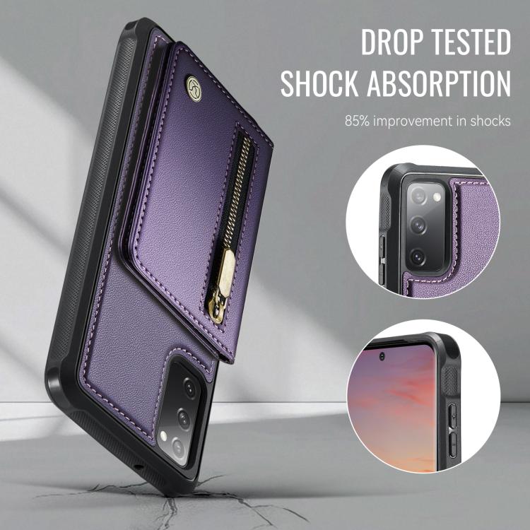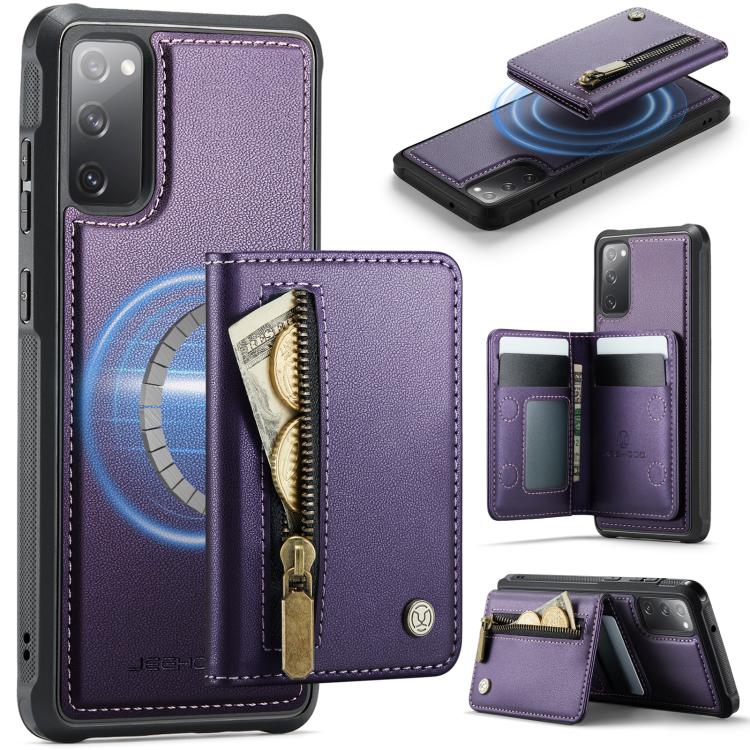 For Samsung Galaxy S20 FE 5G JEEHOOD J12 Exquisite RFID MagSafe Zipper Card Bag Phone Case(Purple)