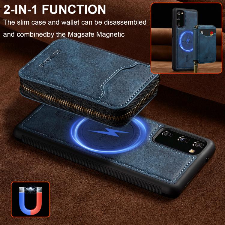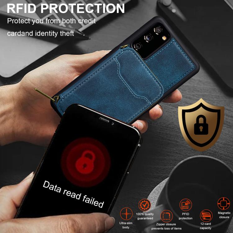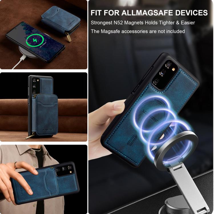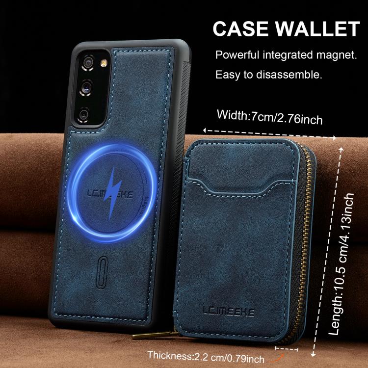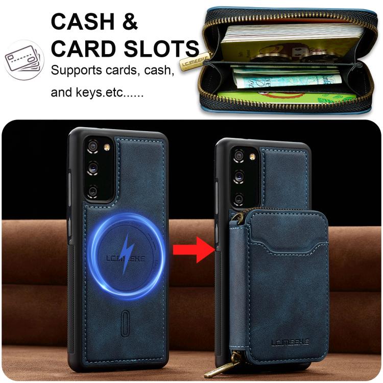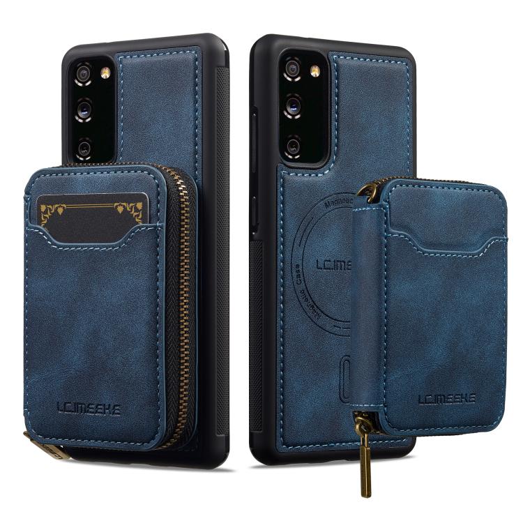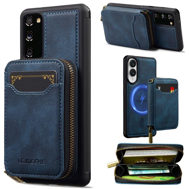 For Samsung Galaxy S20 FE 5G LC.IMEEKE L6 Series Zipper Card Bag MagSafe Magnetic Phone Case(Blue)
