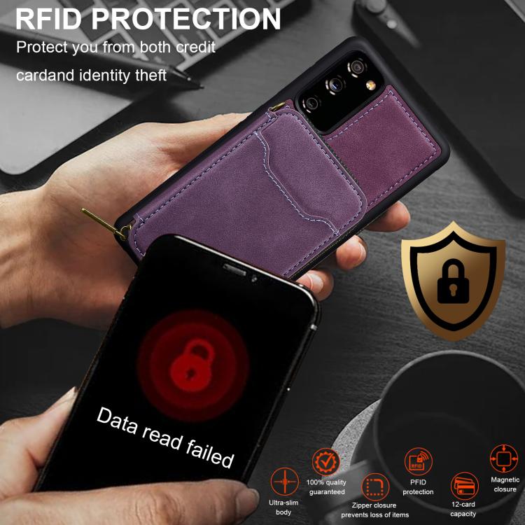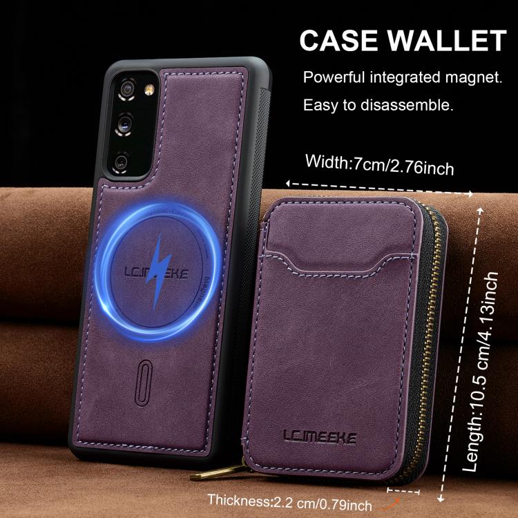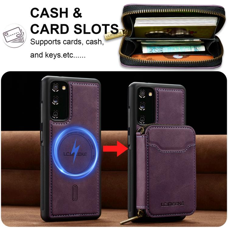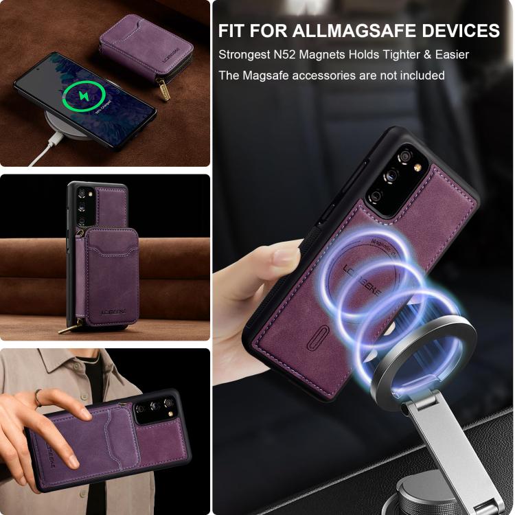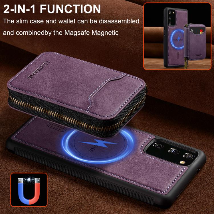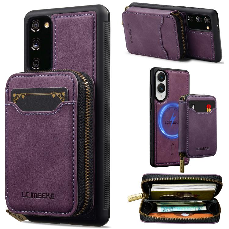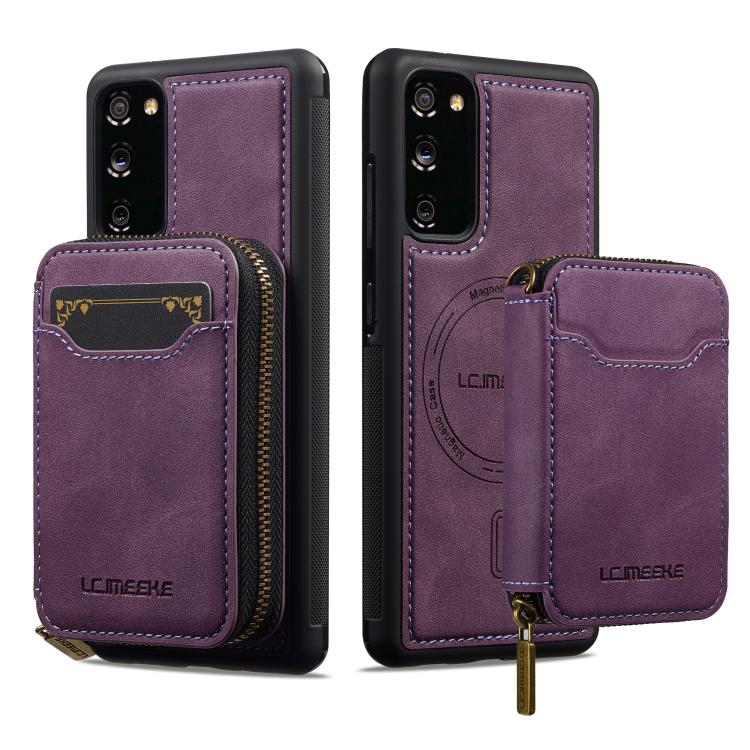 For Samsung Galaxy S20 FE 5G LC.IMEEKE L6 Series Zipper Card Bag MagSafe Magnetic Phone Case(Purple)