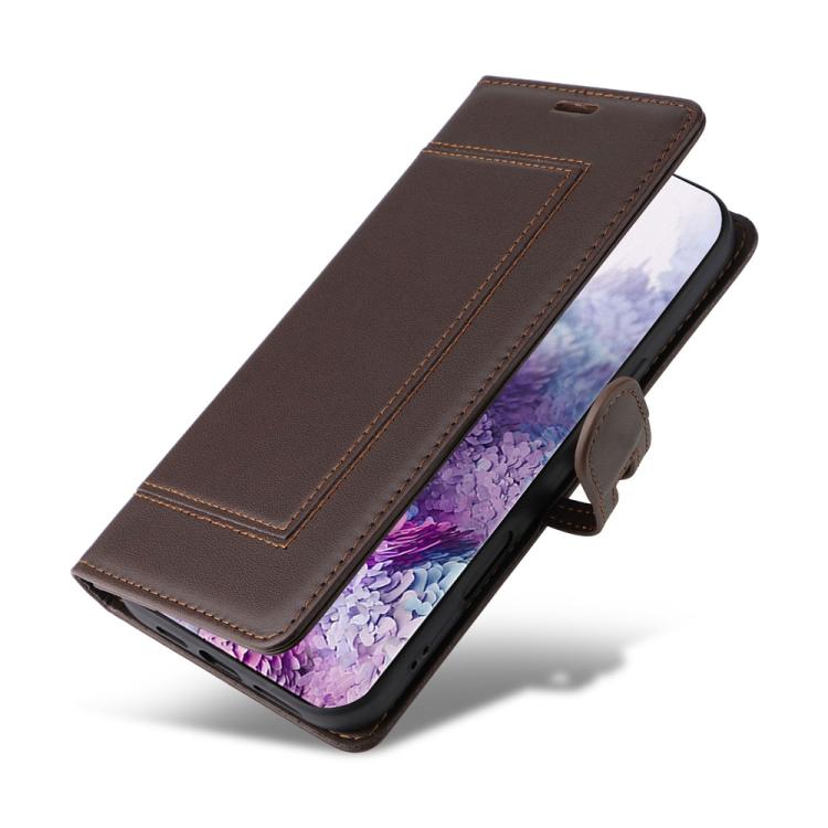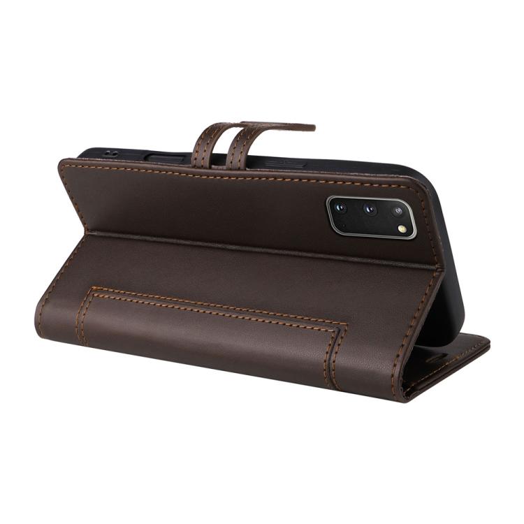 For Samsung Galaxy S20 FE Stitched Magnetic Buckle Leather Phone Case(Coffee)