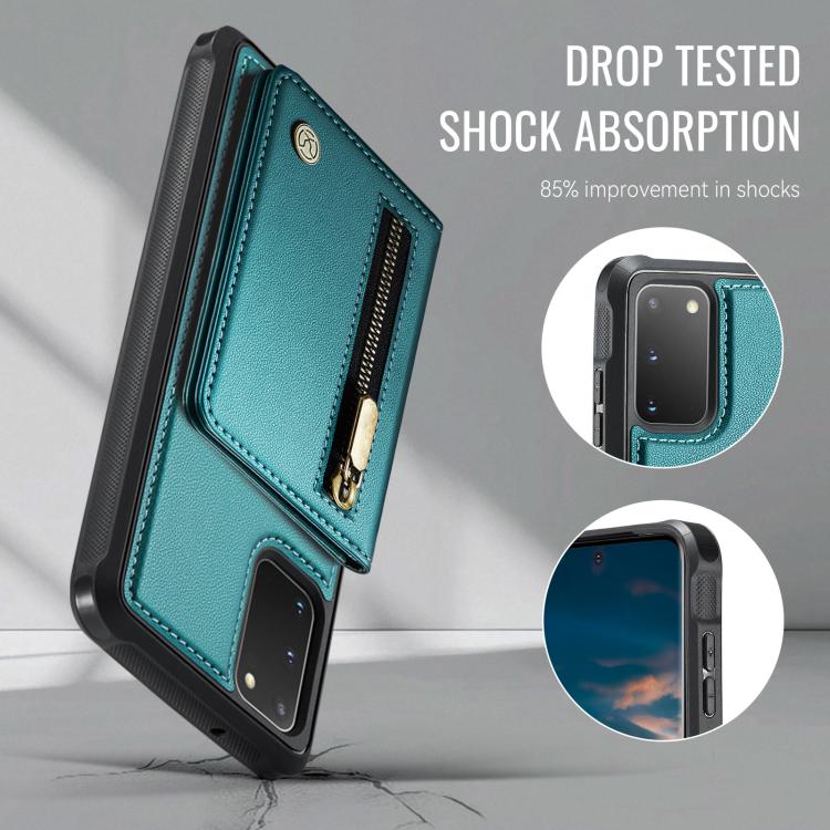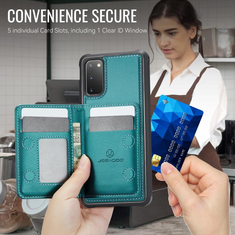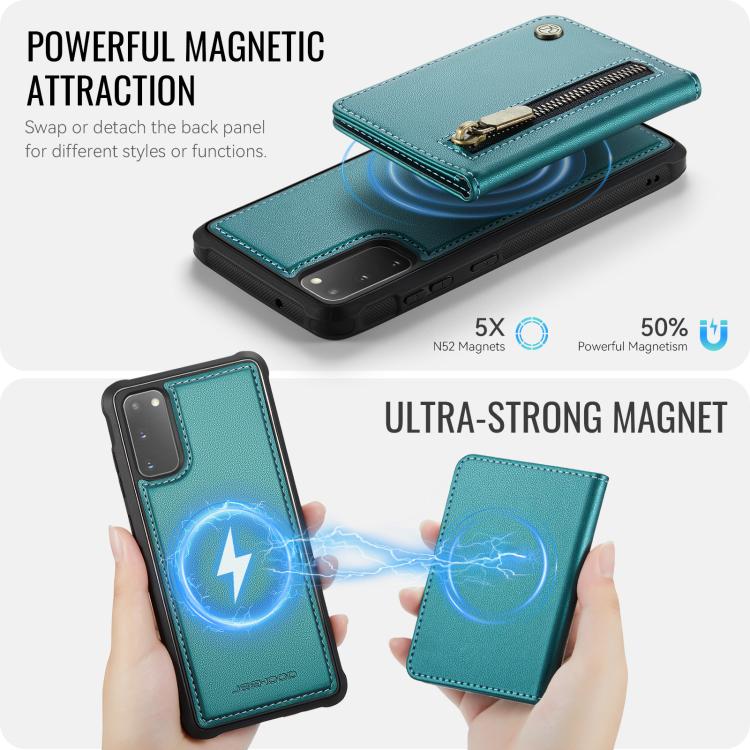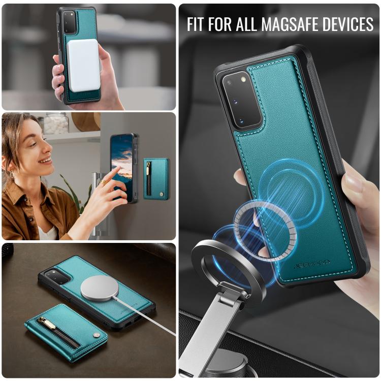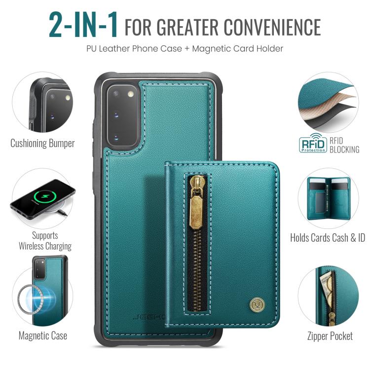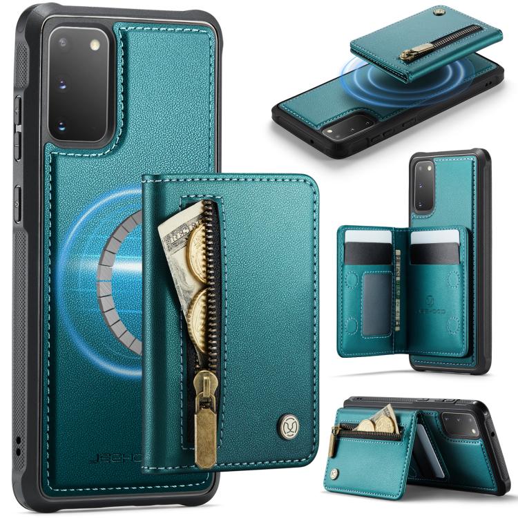 For Samsung Galaxy S20 JEEHOOD J12 Exquisite RFID MagSafe Zipper Card Bag Phone Case(Green)