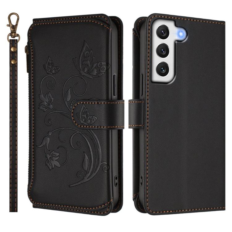For Samsung Galaxy S21+ 5G Butterfly Love Flower Multi-card Zipper Wallet Leather Phone Case(Black)
