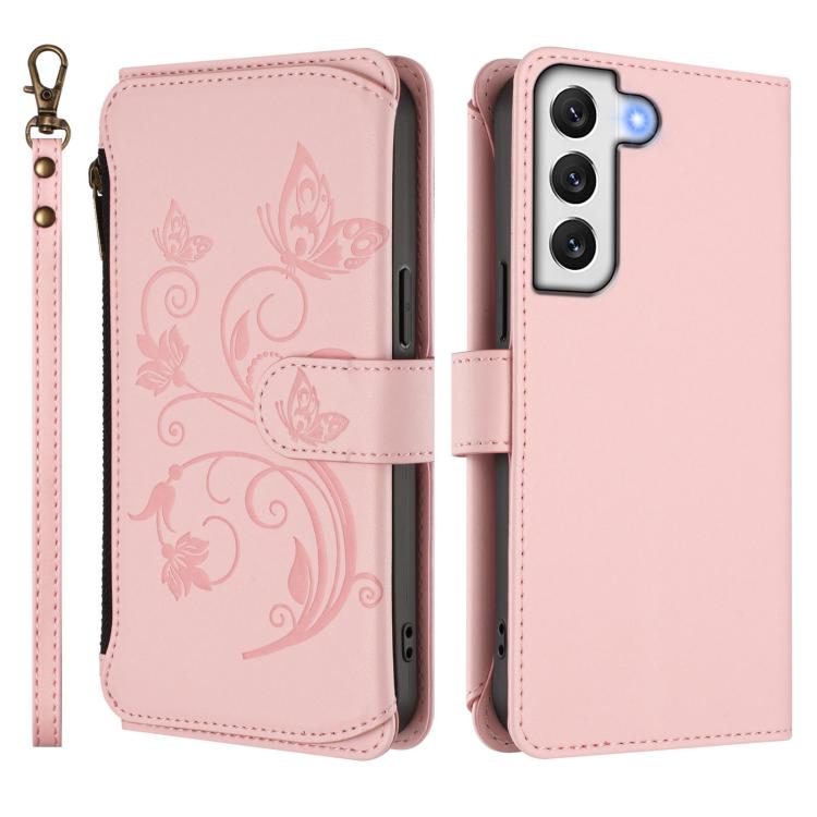 For Samsung Galaxy S21+ 5G Butterfly Love Flower Multi-card Zipper Wallet Leather Phone Case(Pink)